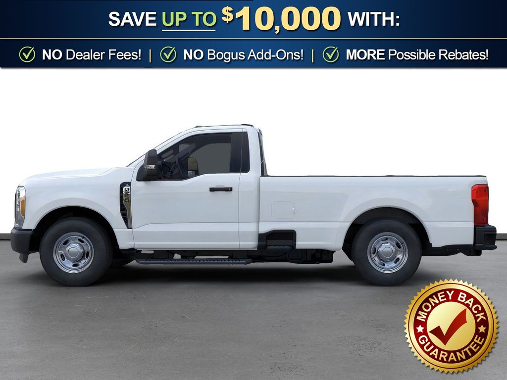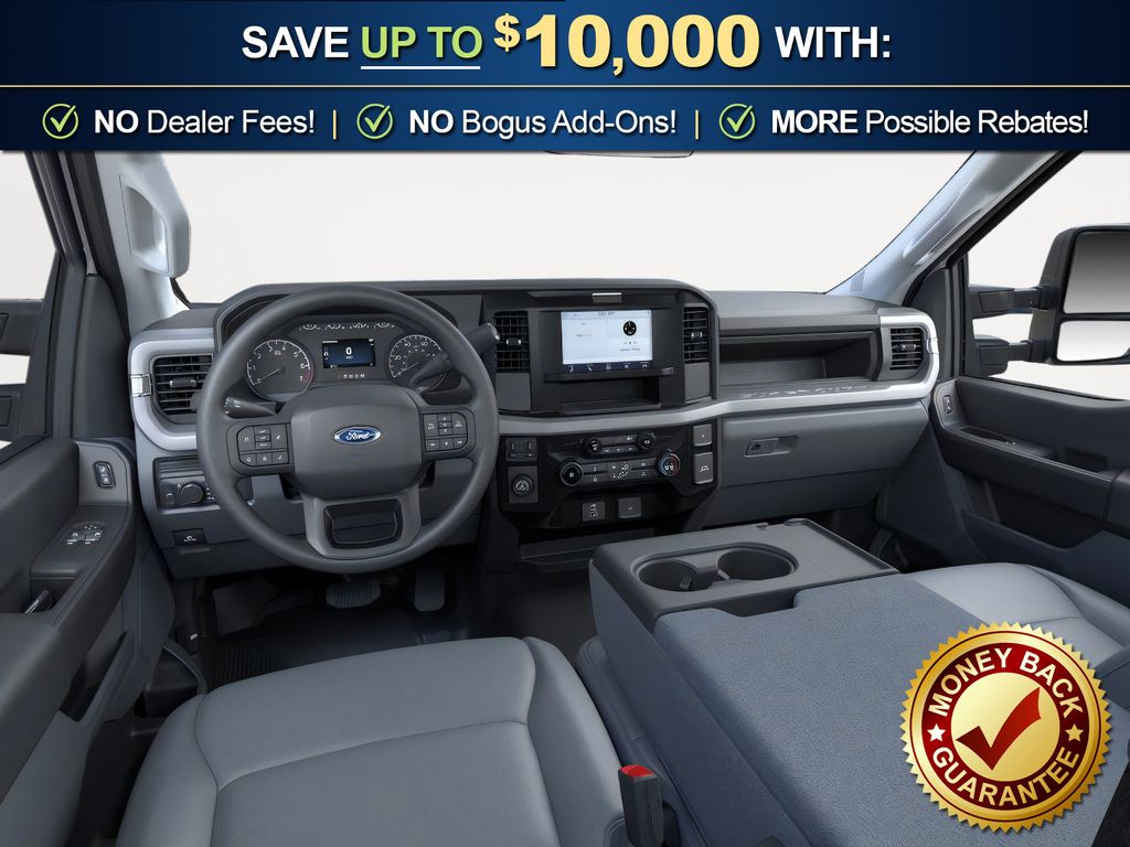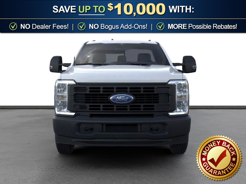 Oxford White 2026 Ford F-250SD XL fctp RWD 10-Speed Automatic 6.8L V8 4 Speakers, 4-Wheel Disc Brakes, ABS brakes, Air Conditioning, AM/FM radio, Brake assist, Cloth 40/20/40 Split Bench Seat, Compass, Delay-off headlights, Dual front impact airbags, Dual front side impact airbags, Electronic Stability Control, Emergency communication system: SYNC 4 911 Assist, Exterior Parking Camera Rear, Ford Connectivity Package (1-Year Included), Front anti-roll bar, Front Center Armrest w/Storage, Front License Plate Bracket, Front reading lights, Front wheel independent suspension, Fully automatic headlights, Heated door mirrors, Illuminated entry, Internet access capable: 5G Modem - Ford Connectivity Package, LED Roof Clearance Lights, Low tire pressure warning, Outside temperature display, Overhead airbag, Overhead console, Panic alarm, Passenger cancellable airbag, Passenger vanity mirror, Platform Running Boards, Power door mirrors, Power steering, Power windows, Rear step bumper, Remote keyless entry, Security system, Speed control, Steering wheel mounted audio controls, SYNC 4, Tachometer, Telescoping steering wheel, Tilt steering wheel, Traction control, Trip computer, Turn signal indicator mirrors, Variably intermittent wipers.