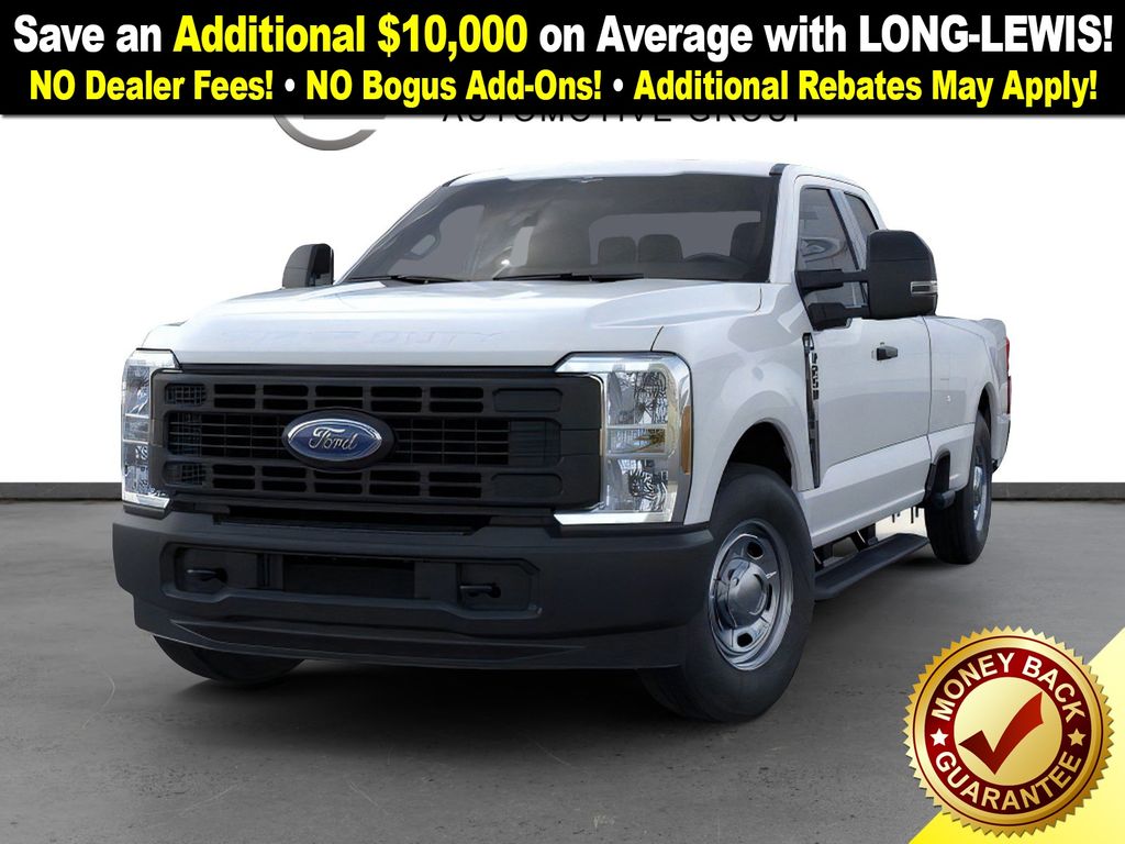 Oxford White 2026 Ford F-250SD XL FCT RWD 10-Speed Automatic 6.8L V8 17" Argent Painted Steel Wheels, 4-Wheel Disc Brakes, 6 Speakers, ABS brakes, Air Conditioning, AM/FM radio, AM/FM Stereo w/MP3 Player, Brake assist, Compass, Delay-off headlights, Dual front impact airbags, Dual front side impact airbags, Electronic Stability Control, Emergency communication system: SYNC 4 911 Assist, Exterior Parking Camera Rear, Ford Connectivity Package (1-Year Included), Front anti-roll bar, Front Center Armrest w/Storage, Front License Plate Bracket, Front reading lights, Front wheel independent suspension, Fully automatic headlights, GVWR: 10,000 lb Payload Package, HD Vinyl 40/20/40 Split Bench Seat, Heated door mirrors, Illuminated entry, Interior Work Surface, Internet access capable: 5G Modem - Ford Connectivity Package, Low tire pressure warning, Outside temperature display, Overhead airbag, Overhead console, Panic alarm, Passenger cancellable airbag, Passenger vanity mirror, Platform Running Boards, Power door mirrors, Power steering, Power windows, Rear step bumper, Remote keyless entry, Security system, Speed control, Split folding rear seat, Steering wheel mounted audio controls, SYNC 4, Tachometer, Telescoping steering wheel, Tilt steering wheel, Traction control, Trailer Brake Controller, Trip computer, Turn signal indicator mirrors, Variably intermittent wipers.