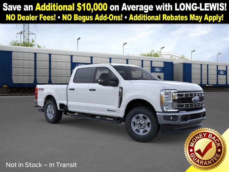 Oxford White 2026 Ford F-250SD XLT NFT 4WD 10-Speed Automatic Power Stroke 6.7L V8 DI 32V OHV Turbodiesel 4WD, 4-Wheel Disc Brakes, 6 Speakers, ABS brakes, Air Conditioning, Alloy wheels, AM/FM radio, AM/FM Stereo w/MP3 Player, Auto High-beam Headlights, Brake assist, Bumpers: chrome, Cloth 40/20/40 Split Bench Seat, Compass, Delay-off headlights, Driver door bin, Driver vanity mirror, Dual AGM 68 AH Battery, Dual front impact airbags, Dual front side impact airbags, Electronic Stability Control, Emergency communication system: SYNC 4 911 Assist, Engine Block Heater, Exterior Parking Camera Rear, Fixed Rear Window w/Privacy Glass & Defrost, Front anti-roll bar, Front Center Armrest w/Storage, Front fog lights, Front reading lights, Fully automatic headlights, FX4 Off-Road Package, GVWR: 10,000 lb Payload Package, Heated door mirrors, Hill Descent Control, Illuminated entry, Internet access capable: 5G Modem - Ford Connectivity Package, Low tire pressure warning, Off-Road Specifically Tuned Shock Absorbers, Outside temperature display, Overhead airbag, Overhead console, Panic alarm, Passenger door bin, Passenger vanity mirror, Platform Running Boards, Power door mirrors, Power driver seat, Power steering, Power windows, Privacy Glass, Rear reading lights, Rear step bumper, Remote keyless entry, Security system, Speed control, Split folding rear seat, Steering wheel mounted audio controls, SYNC 4, Tachometer, Telescoping steering wheel, Tilt steering wheel, Traction control, Trip computer, Turn signal indicator mirrors, Unique FX4 Off-Road Box Decal, Upfitter Switches (6), Variably intermittent wipers, Wheels: 18" Sparkle Silver Painted Cast Aluminum, 4WD.