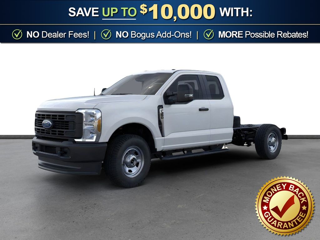 Oxford White 2026 Ford F-350SD XL CMF 4WD 10-Speed Automatic 7.3L V8 PFI OHV 16V Federal 335hp 4WD, 3-Ton Mechanical Jack, 4-Wheel Disc Brakes, 410 Amp Dual Alternators, 6 Speakers, ABS brakes, Air Conditioning, AM/FM radio, Brake assist, Center High-Mounted Stop Lamp (CHMSL), Cloth 40/20/40 Split Bench Seat, Compass, Delay-off headlights, Dual front impact airbags, Dual front side impact airbags, Electronic Stability Control, Emergency communication system: SYNC 4 911 Assist, Ford Connectivity Package (1-Year Included), Front anti-roll bar, Front Center Armrest w/Storage, Front License Plate Bracket, Front reading lights, Fully automatic headlights, Heated door mirrors, Illuminated entry, Interior Work Surface, Internet access capable: 5G Modem - Ford Connectivity Package, Low tire pressure warning, Outside temperature display, Overhead airbag, Overhead console, Panic alarm, Passenger cancellable airbag, Passenger vanity mirror, Platform Running Boards, Power door mirrors, Power steering, Power windows, Rear anti-roll bar, Remote keyless entry, Security system, Speed control, Split folding rear seat, Steering wheel mounted audio controls, Tachometer, Telescoping steering wheel, Tilt steering wheel, Traction control, Trip computer, Turn signal indicator mirrors, Variably intermittent wipers, 4WD.
