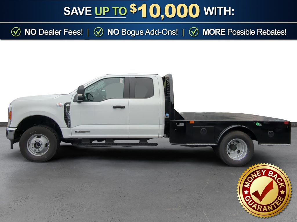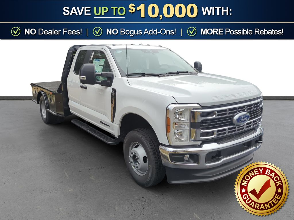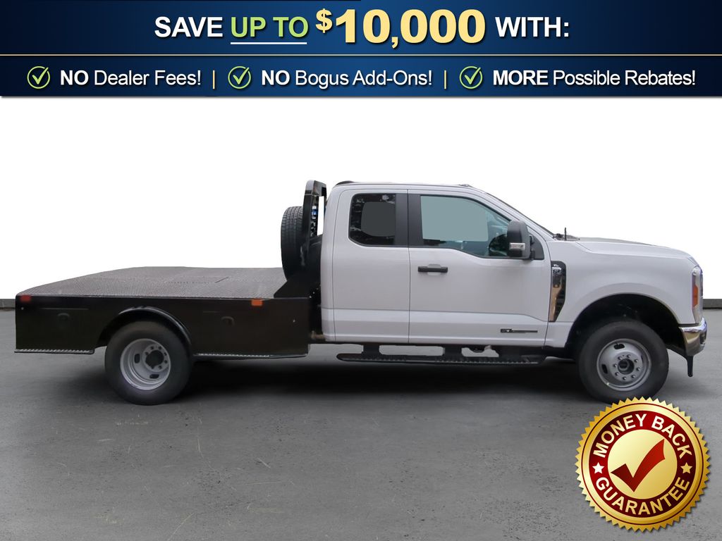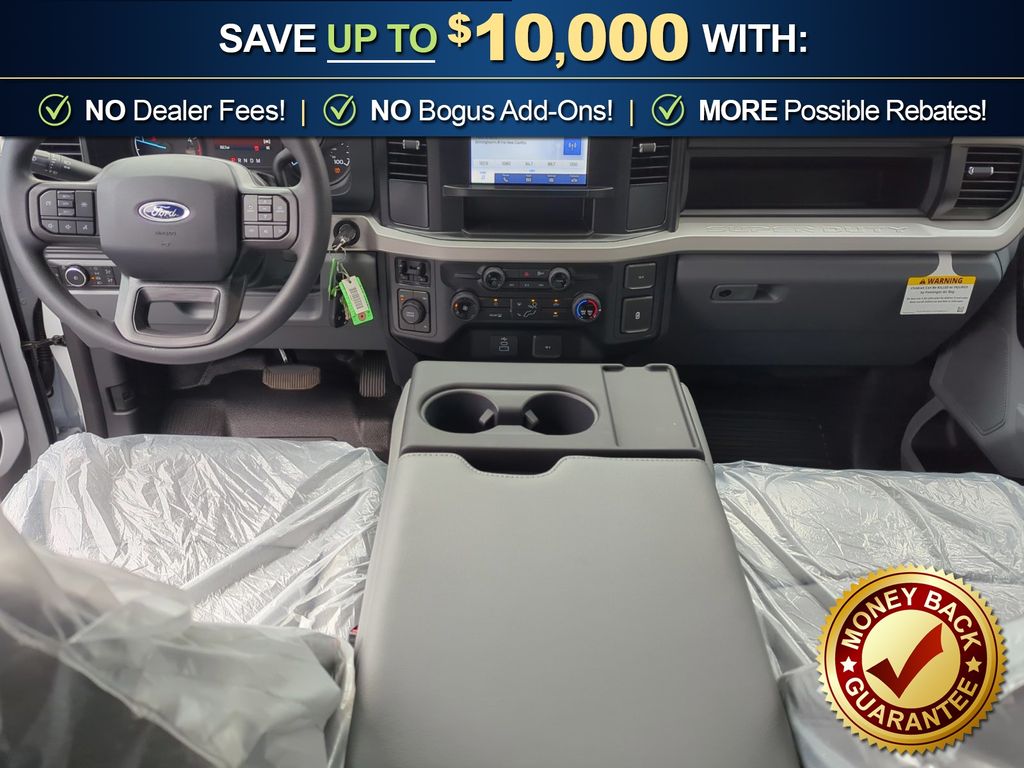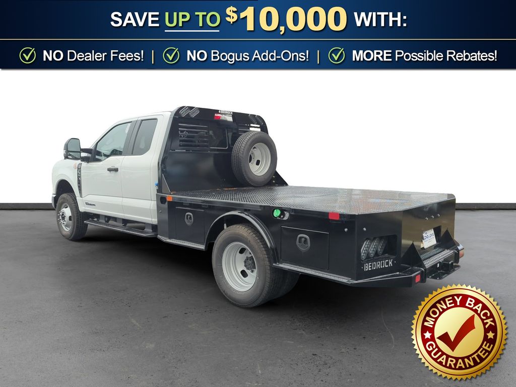 Oxford White 2026 Ford F-350SD XL DRW 4WD 10-Speed Automatic Power Stroke 6.7L V8 DI 32V OHV Turbodiesel 4WD, 17" Argent Painted Steel Wheels, 4-Ton Hydraulic Jack, 4-Wheel Disc Brakes, 6 Speakers, ABS brakes, Air Conditioning, AM/FM radio, Brake assist, Center High-Mounted Stop Lamp (CHMSL), Cloth 40/20/40 Split Bench Seat, Compass, Delay-off headlights, Dual front impact airbags, Dual front side impact airbags, Dual rear wheels, Emergency communication system: SYNC 4 911 Assist, Engine Block Heater, Ford Connectivity Package (1-Year Included), Front anti-roll bar, Front Center Armrest w/Storage, Front reading lights, Fully automatic headlights, GVWR: 14,000 Lb Payload Package, Heated door mirrors, Illuminated entry, Internet access capable: 5G Modem - Ford Connectivity Package, Low tire pressure warning, Outside temperature display, Overhead airbag, Overhead console, Panic alarm, Passenger cancellable airbag, Passenger vanity mirror, Platform Running Boards, Power door mirrors, Power steering, Power windows, Radio: AM/FM Stereo with MP3 Player, Rear anti-roll bar, Rear View Camera and Prep Kit, Remote keyless entry, Security system, Speed control, Split folding rear seat, Steering wheel mounted audio controls, SYNC 4, Tachometer, Telescoping steering wheel, Tilt steering wheel, Traction control, Trip computer, Turn signal indicator mirrors, Variably intermittent wipers, 4WD.