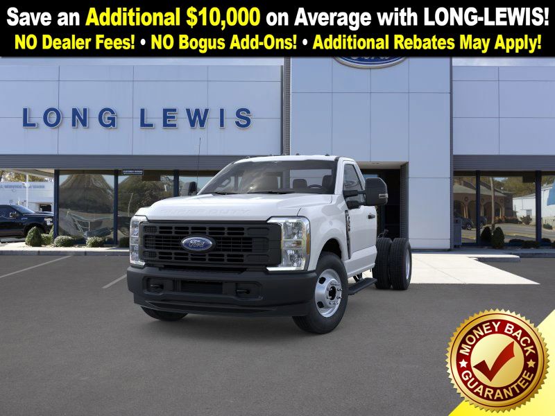Oxford White 2026 Ford F-350SD XL DRW RWD 10-Speed Automatic 7.3L V8 PFI OHV 16V Federal 335hp 17" Argent Painted Steel Wheels, 190 Amp Alternator, 3.73 Axle Ratio, 4 Speakers, 4-Wheel Disc Brakes, ABS brakes, Air Conditioning, AM/FM radio, AM/FM Stereo w/MP3 Player, Brake assist, Cloth 40/20/40 Split Bench Seat, Compass, Delay-off headlights, Dual 68 AH/65 AGM Battery, Dual front impact airbags, Dual front side impact airbags, Dual rear wheels, Emergency communication system: SYNC 4 911 Assist, Ford Connectivity Package (1-Year Included), Front anti-roll bar, Front Center Armrest w/Storage, Front reading lights, Front wheel independent suspension, Fully automatic headlights, GVWR: 14,000 lb Payload Package, HD Vinyl 40/20/40 Split Bench Seat, Heated door mirrors, Illuminated entry, Internet access capable: 5G Modem - Ford Connectivity Package, Low tire pressure warning, Outside temperature display, Overhead airbag, Overhead console, Panic alarm, Passenger cancellable airbag, Passenger vanity mirror, Power door mirrors, Power steering, Power windows, Rear anti-roll bar, Remote keyless entry, Security system, Speed control, Steering wheel mounted audio controls, SYNC 4 Communication & Entertainment System, Tachometer, Telescoping steering wheel, Tilt steering wheel, Traction control, Trailer Brake Controller, Trip computer, Turn signal indicator mirrors, Variably intermittent wipers.