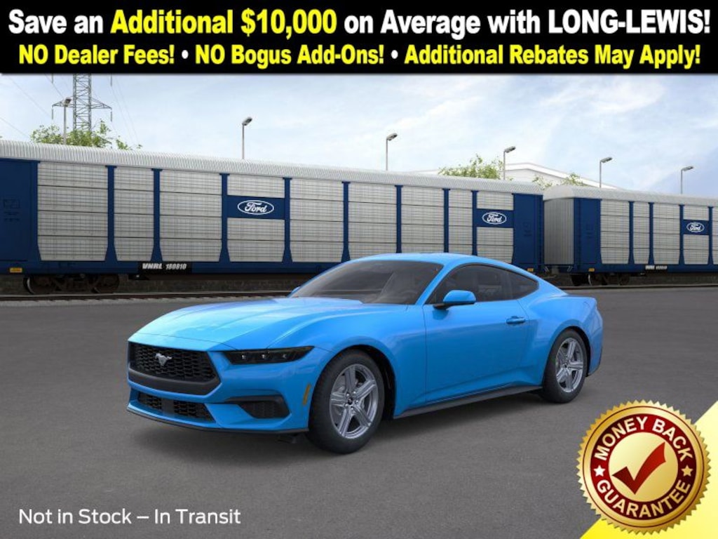 Grabber Blue Metallic 2026 Ford Mustang NFC RWD 10-Speed Automatic EcoBoost 2.3L I4 GTDi DOHC Turbocharged VCT 1st Row Carpeted Black Floor Mats, 4-Wheel Disc Brakes, ABS brakes, Air Conditioning, Alloy wheels, AM/FM Stereo, Auto High-beam Headlights, Automatic temperature control, Brake assist, Bumpers: body-color, Compass, Delay-off headlights, Driver door bin, Driver vanity mirror, Dual front impact airbags, Dual front side impact airbags, Electronic Stability Control, Emergency communication system: 911 Assist, Exterior Parking Camera Rear, Four wheel independent suspension, Front anti-roll bar, Front Bucket Seats, Front Center Armrest, Front dual zone A/C, Front reading lights, Fully automatic headlights, Illuminated entry, Knee airbag, Leather Shift Knob, Low tire pressure warning, Occupant sensing airbag, Outside temperature display, Overhead airbag, Overhead console, Panic alarm, Passenger door bin, Passenger vanity mirror, Power door mirrors, Power steering, Power windows, Radio data system, Rain sensing wipers, Rear anti-roll bar, Rear Parking Sensors, Rear window defroster, Remote keyless entry, Speed control, Speed-sensing steering, Speed-Sensitive Wipers, Split folding rear seat, Sport steering wheel, Steering wheel mounted audio controls, SYNC 4, Tachometer, Telescoping steering wheel, Tilt steering wheel, Traction control, Trip computer, Variably intermittent wipers, Voltmeter, Wheels: 18" x 8" Painted Shadow Silver Cast Alum.
