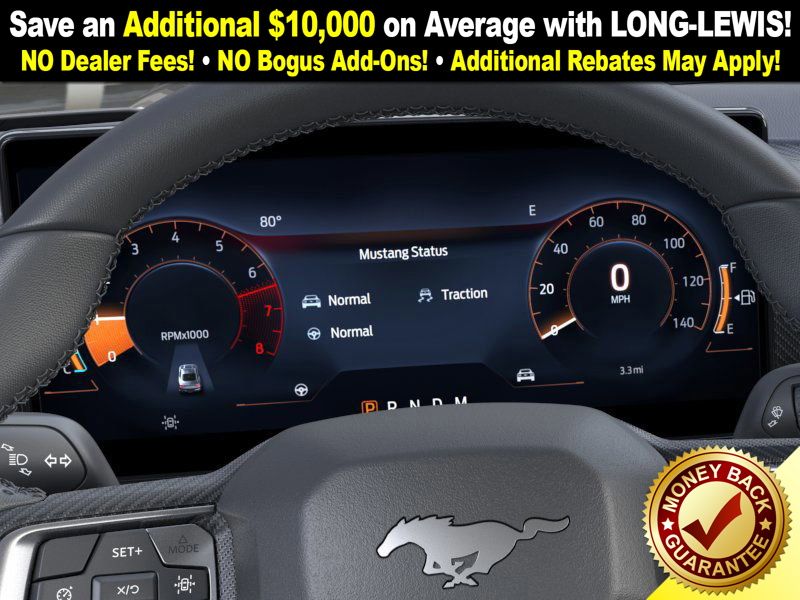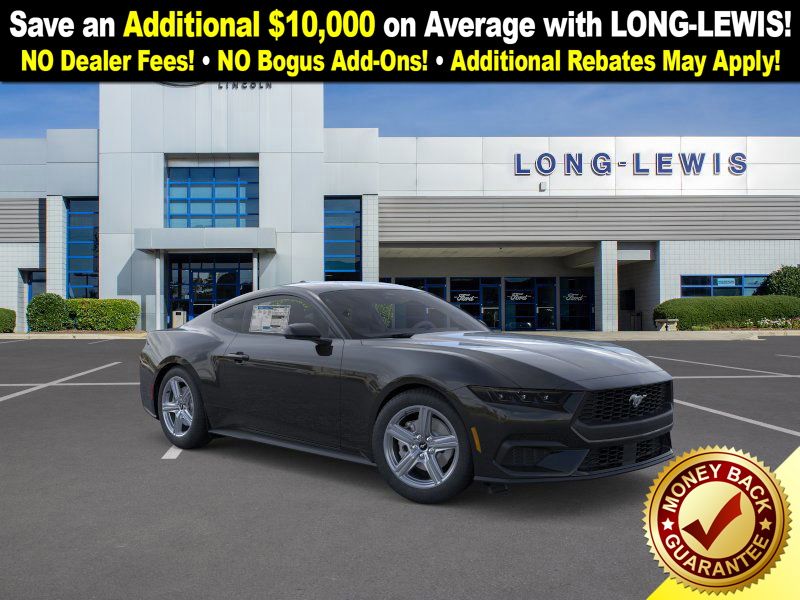Dealer Discount of $1,542 off MSRP Priced below KBB Fair Purchase Price! Shadow Black 2026 Ford Mustang NFC RWD 10-Speed Automatic EcoBoost 2.3L I4 GTDi DOHC Turbocharged VCT 1st Row Carpeted Black Floor Mats, 4-Wheel Disc Brakes, ABS brakes, Air Conditioning, Alloy wheels, AM/FM Stereo, Auto High-beam Headlights, Automatic temperature control, Brake assist, Bumpers: body-color, Compass, Delay-off headlights, Driver door bin, Driver vanity mirror, Dual front impact airbags, Dual front side impact airbags, Electronic Stability Control, Emergency communication system: 911 Assist, Exterior Parking Camera Rear, Four wheel independent suspension, Front anti-roll bar, Front Bucket Seats, Front Center Armrest, Front dual zone A/C, Front reading lights, Fully automatic headlights, Illuminated entry, Internet access capable: FordPass Connect, Knee airbag, Leather Shift Knob, Low tire pressure warning, Occupant sensing airbag, Outside temperature display, Overhead airbag, Overhead console, Panic alarm, Passenger door bin, Passenger vanity mirror, Power door mirrors, Power steering, Power windows, Radio data system, Rain sensing wipers, Rear anti-roll bar, Rear Parking Sensors, Rear window defroster, Remote keyless entry, Speed control, Speed-sensing steering, Speed-Sensitive Wipers, Split folding rear seat, Sport steering wheel, Steering wheel mounted audio controls, SYNC 4, Tachometer, Telescoping steering wheel, Tilt steering wheel, Traction control, Trip computer, Variably intermittent wipers, Voltmeter, Wheels: 18" x 8" Painted Shadow Silver Cast Alum.