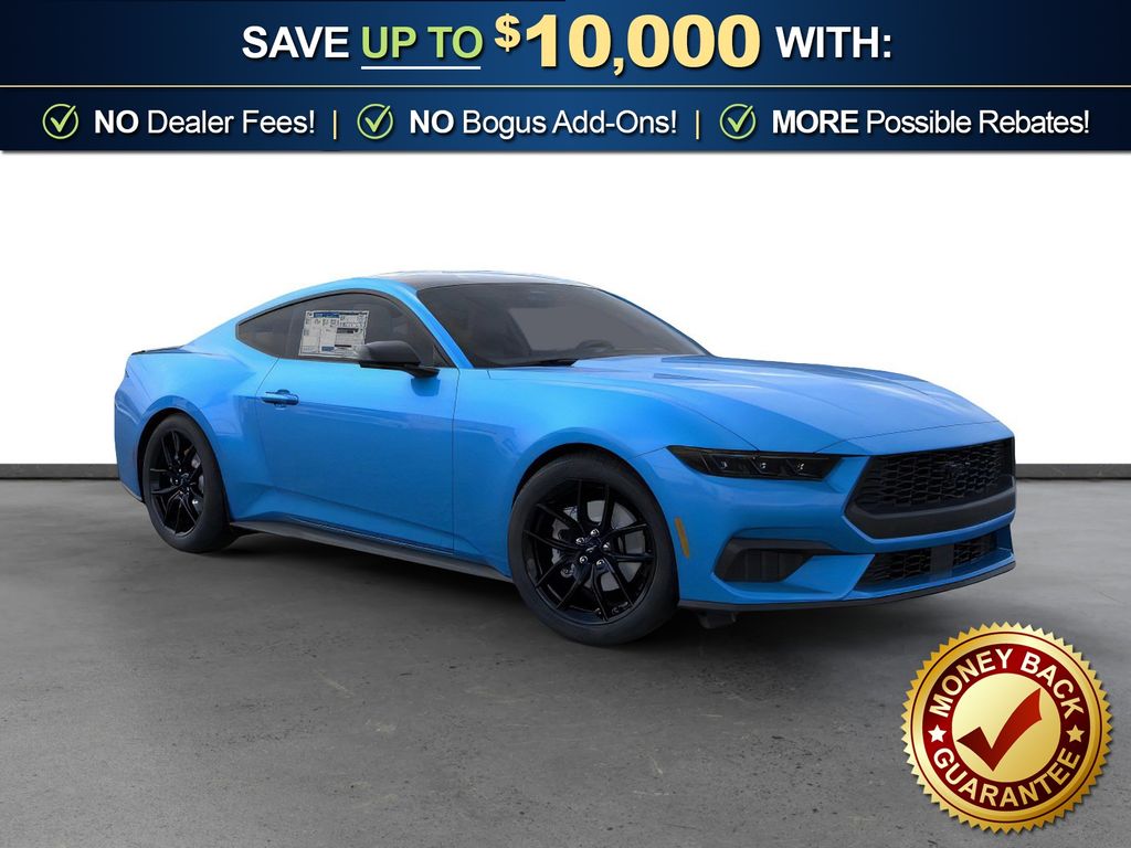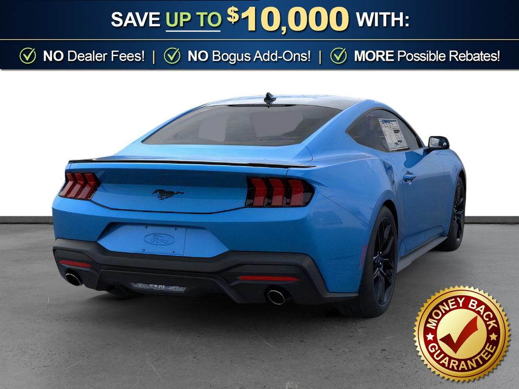 Dealer Discount of $1,874 off MSRP Grabber Blue Metallic 2026 Ford Mustang FCT RWD 10-Speed Automatic EcoBoost 2.3L I4 GTDi DOHC Turbocharged VCT 1st Row Carpeted Black Floor Mats, 4-Wheel Disc Brakes, ABS brakes, Air Conditioning, Alloy wheels, AM/FM Stereo, Auto High-beam Headlights, Automatic temperature control, Black Front and Rear Pony Badges, Black Mirror Caps, Brake assist, Bumpers: body-color, Compass, Delay-off headlights, Driver door bin, Driver vanity mirror, Dual front impact airbags, Dual front side impact airbags, Electronic Stability Control, Emergency communication system: 911 Assist, Exterior Parking Camera Rear, Four wheel independent suspension, Front anti-roll bar, Front Bucket Seats, Front Center Armrest, Front dual zone A/C, Front reading lights, Fully automatic headlights, Illuminated entry, Knee airbag, Leather Shift Knob, Low tire pressure warning, Mustang Nite Pony Package, Occupant sensing airbag, Outside temperature display, Overhead airbag, Overhead console, Painted Black Roof, Panic alarm, Passenger door bin, Passenger vanity mirror, Power door mirrors, Power steering, Power windows, Radio data system, Rain sensing wipers, Rear anti-roll bar, Rear Parking Sensors, Rear window defroster, Remote keyless entry, Speed control, Speed-sensing steering, Speed-Sensitive Wipers, Split folding rear seat, Sport steering wheel, Steering wheel mounted audio controls, SYNC 4, Tachometer, Telescoping steering wheel, Tilt steering wheel, Traction control, Trip computer, Variably intermittent wipers, Voltmeter, Wheels: 18" x 8" Painted Shadow Silver Cast Aluminum, Wheels: 19" x 8.5" Ebony Black-Painted Aluminum.