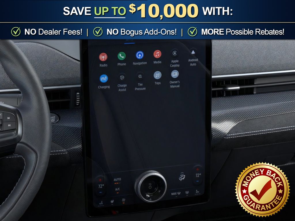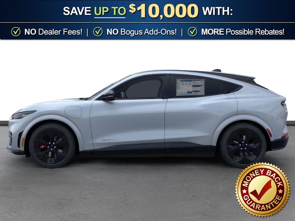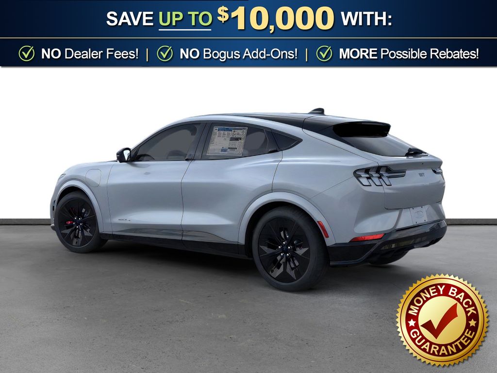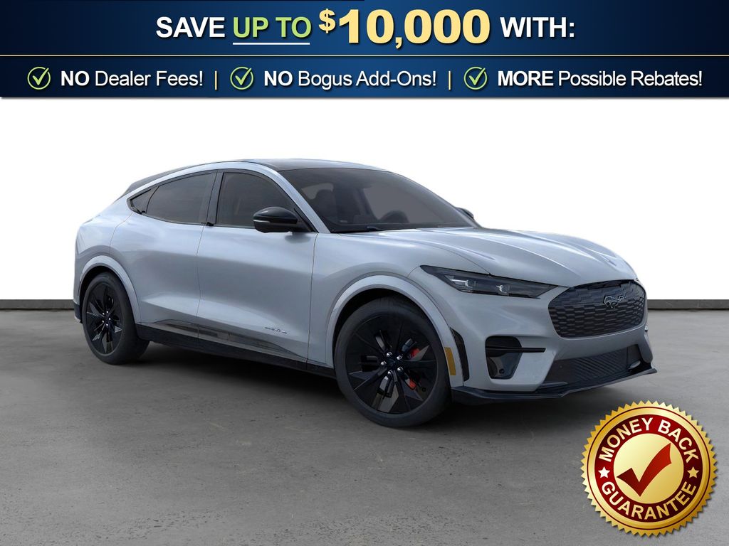 Glacier Gray Metallic TriCoat 2026 Ford Mustang Mach-E GT NFT AWD Single-Speed Automatic Dual Electric Motor 10 Speakers, 4-Wheel Disc Brakes, ABS brakes, Air Conditioning, Alloy wheels, AM/FM radio: SiriusXM with 360L, Apple CarPlay/Android Auto, Auto High-beam Headlights, Auto-dimming Rear-View mirror, Automatic temperature control, Brake assist, Bumpers: body-color, Compass, Delay-off headlights, Drainable Frunk, Driver door bin, Driver vanity mirror, Dual front impact airbags, Dual front side impact airbags, Electronic Stability Control, Emergency communication system: 911 Assist, Exterior Parking Camera Rear, Four wheel independent suspension, Front anti-roll bar, Front Bucket Seats, Front Center Armrest, Front dual zone A/C, Front License Plate Bracket, Front reading lights, Fully automatic headlights, Garage door transmitter, Heated door mirrors, Heated front seats, Heated Perforated ActiveX Performance Seats, Heated steering wheel, Illuminated entry, Knee airbag, Low tire pressure warning, Memory seat, Mobile Power Cord (120V/240V), Navigation system: Connected Navigation, Occupant sensing airbag, Outside temperature display, Overhead airbag, Overhead console, Panic alarm, Panoramic Fixed-Glass Roof Package, Passenger door bin, Passenger vanity mirror, Power door mirrors, Power driver seat, Power Liftgate, Power passenger seat, Power steering, Power windows, Radio data system, Radio: B&O Sound System by Bang and Olufsen, Rain sensing wipers, Rear anti-roll bar, Rear seat center armrest, Rear side impact airbag, Rear window defroster, Rear window wiper, Remote keyless entry, Security system, SiriusXM with 360L, Speed control, Speed-sensing steering, Speed-Sensitive Wipers, Split folding rear seat, Spoiler, Steering wheel mounted audio controls, SYNC 4A with Enhanced Voice Recognition, Telescoping steering wheel, Tilt steering wheel, Tire Inflator and Sealant Kit, Traction control, Trip computer, Turn signal indicator mirrors, Variably intermittent wipers, Wheels: 20" Monochromatic High Gloss Black-Painted.