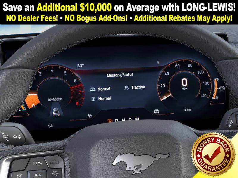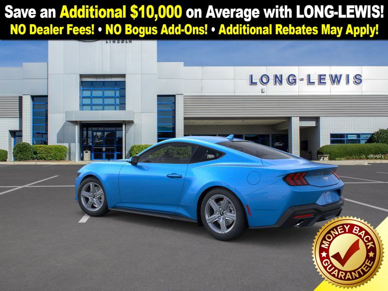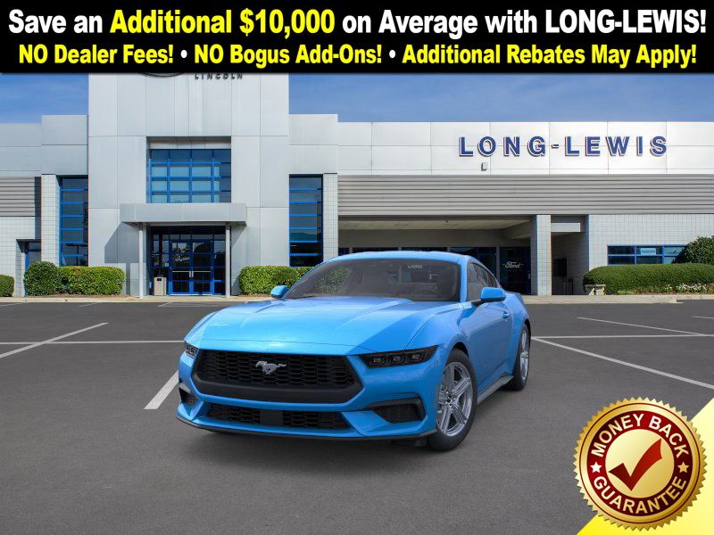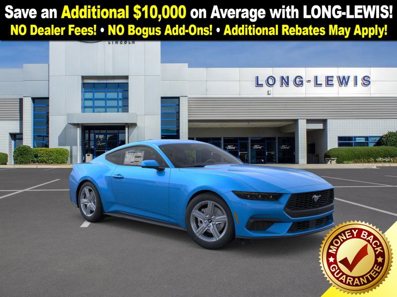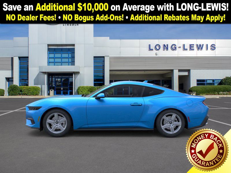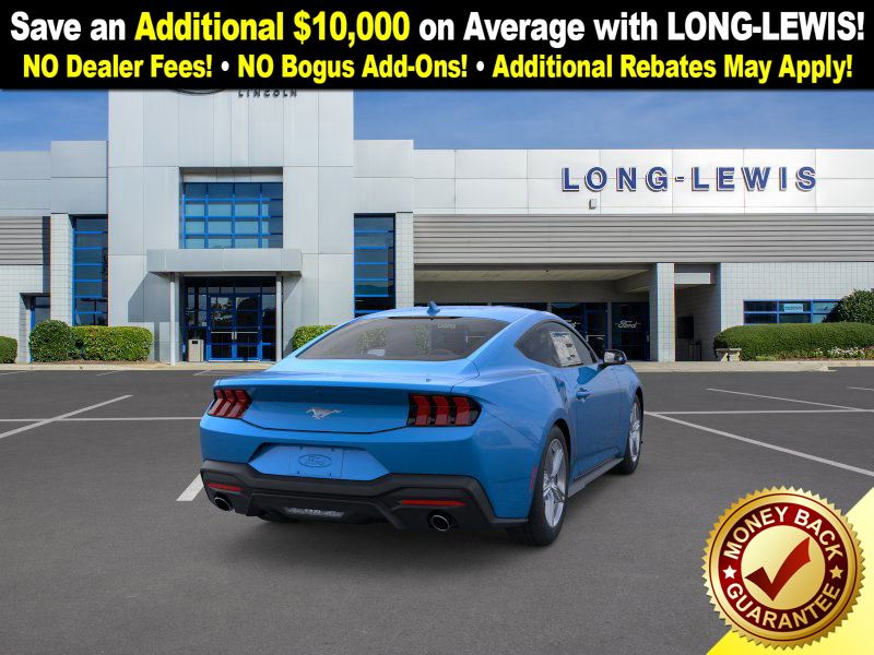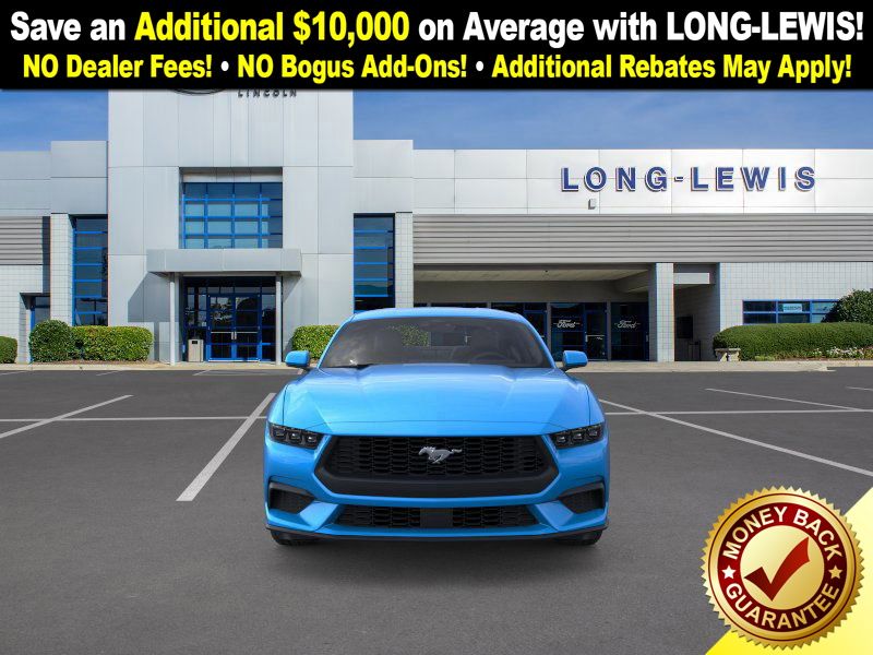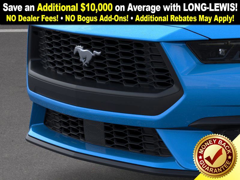 Dealer Discount of $1,565 off MSRP Grabber Blue Metallic 2026 Ford Mustang FCT RWD 10-Speed Automatic EcoBoost 2.3L I4 GTDi DOHC Turbocharged VCT 1st Row Carpeted Black Floor Mats, 4-Wheel Disc Brakes, ABS brakes, Air Conditioning, Alloy wheels, AM/FM Stereo, Auto High-beam Headlights, Automatic temperature control, Brake assist, Bumpers: body-color, Compass, Delay-off headlights, Driver door bin, Driver vanity mirror, Dual front impact airbags, Dual front side impact airbags, Electronic Stability Control, Emergency communication system: 911 Assist, Exterior Parking Camera Rear, Four wheel independent suspension, Front anti-roll bar, Front Bucket Seats, Front Center Armrest, Front dual zone A/C, Front reading lights, Fully automatic headlights, Illuminated entry, Internet access capable: FordPass Connect, Knee airbag, Leather Shift Knob, Low tire pressure warning, Occupant sensing airbag, Outside temperature display, Overhead airbag, Overhead console, Panic alarm, Passenger door bin, Passenger vanity mirror, Power door mirrors, Power steering, Power windows, Radio data system, Rain sensing wipers, Rear anti-roll bar, Rear Parking Sensors, Rear window defroster, Remote keyless entry, Speed control, Speed-sensing steering, Speed-Sensitive Wipers, Split folding rear seat, Sport steering wheel, Steering wheel mounted audio controls, SYNC 4, Tachometer, Telescoping steering wheel, Tilt steering wheel, Traction control, Trip computer, Variably intermittent wipers, Voltmeter, Wheels: 18" x 8" Painted Shadow Silver Cast Alum.