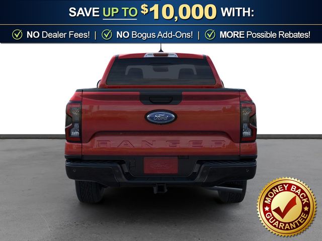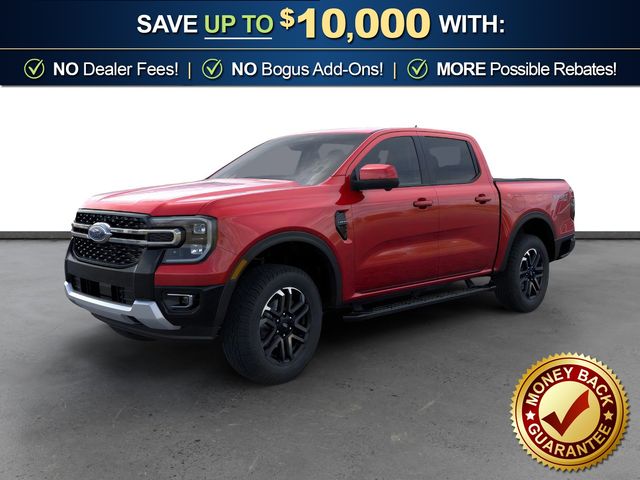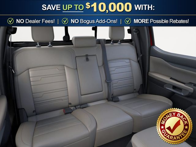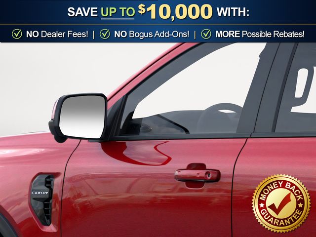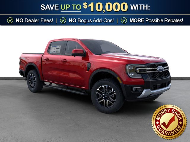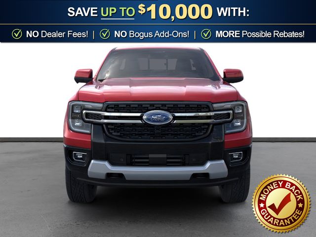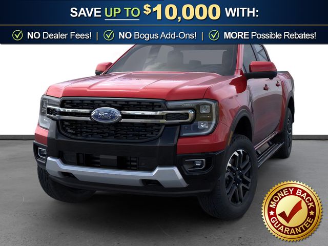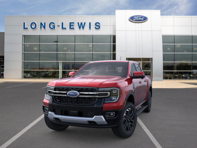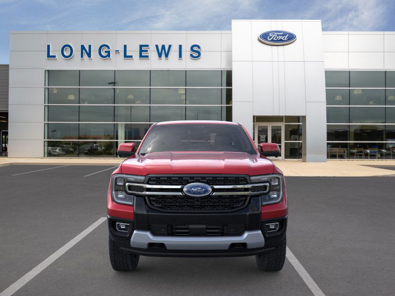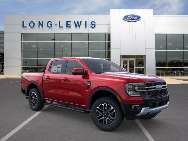 2026 Ford Ranger Lariat NFT Ruby Red Metallic Tinted Clearcoat Lariat NFT 4WD 10-Speed Automatic EcoBoost 2.3L I4 GTDi DOHC Turbocharged VCT 4WD, 10 Speakers, 4-Wheel Disc Brakes, ABS brakes, ActiveX Trimmed Front Heated Bucket Seats, Air Conditioning, Alloy wheels, AM/FM radio: SiriusXM with 360L, Auto High-beam Headlights, Auto-dimming Rear-View mirror, Automatic temperature control, Black Grille Surround, Black Running Boards, Brake assist, Chrome Center Bar and Grille Surround, Class IV Trailer Hitch Receiver, Compass, Delay-off headlights, Driver door bin, Driver vanity mirror, Dual front impact airbags, Dual front side impact airbags, Electronic Stability Control, Emergency communication system: SYNC 4 911 Assist, Front anti-roll bar, Front Bucket Seats, Front Center Armrest, Front dual zone A/C, Front fog lights, Front reading lights, Front wheel independent suspension, Fully automatic headlights, Garage door transmitter, Gray Painted Front Fascia and Rear Bumper, Heated door mirrors, Heated front seats, Heated steering wheel, Illuminated entry, Leather Shift Knob, Low tire pressure warning, Memory seat, Navigation system: Connected Navigation, Occupant sensing airbag, Outside temperature display, Overhead airbag, Overhead console, Panic alarm, Passenger door bin, Passenger vanity mirror, Power door mirrors, Power driver seat, Power passenger seat, Power steering, Power windows, Radio: B&O Sound System by Bang and Olufsen, Rain sensing wipers, Rear reading lights, Rear seat center armrest, Rear step bumper, Rear window defroster, Remote keyless entry, Security system, SiriusXM with 360L and 3-Month Trial Subscription, Speed control, Speed-sensing steering, Sport Appearance Package, Sport Box Decal, Steering wheel mounted audio controls, SYNC 4A with Connected Navigation, Telescoping steering wheel, Tilt steering wheel, Traction control, Trailer Tow Package, Trip computer, Turn signal indicator mirrors, Variably intermittent wipers, Voltmeter, Wheels: 18" Machined Aluminum with Dark Pockets, 4WD.