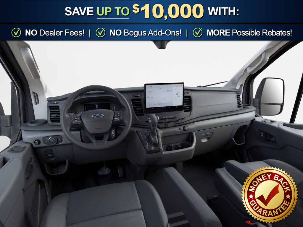 Oxford White 2026 Ford Transit-150 CMF RWD 10-Speed Automatic with Overdrive 3.5L V6 Flex Fuel 2 Additional Keys (4 Total), 3.73 Axle Ratio, 4 Speakers, 4-Wheel Disc Brakes, ABS brakes, Air Conditioning, AM/FM radio, AM/FM Stereo, Apple CarPlay/Android Auto, Auto High-beam Headlights, Brake assist, Cloth Front Bucket Seats, Dark Palazzo Gray Vinyl Bucket Seats, Delay-off headlights, Driver door bin, Driver's Seat Mounted Armrest, Dual front impact airbags, Dual front side impact airbags, Electronic Stability Control, Emergency communication system: 911 Assist, Exterior Parking Camera Rear, Ford Connectivity Package (1-Year Included), Front anti-roll bar, Front Bucket Seats, Front License Plate Bracket, Front reading lights, Front wheel independent suspension, Full Rear Compartment Lighting, Fully automatic headlights, Illuminated entry, Low tire pressure warning, Navigation system: Connected Navigation, Occupant sensing airbag, Overhead airbag, Panic alarm, Passenger cancellable airbag, Passenger door bin, Passenger-Side B-Pillar Assist Handle, Power door mirrors, Power steering, Power windows, Remote keyless entry, Speed control, Steering wheel mounted audio controls, SYNC 4, Tachometer, Telescoping steering wheel, Tilt steering wheel, Traction control, Variably intermittent wipers, Vinyl Front Bucket Seats, Wheels: 16" Silver Steel w/Black Hubcap.