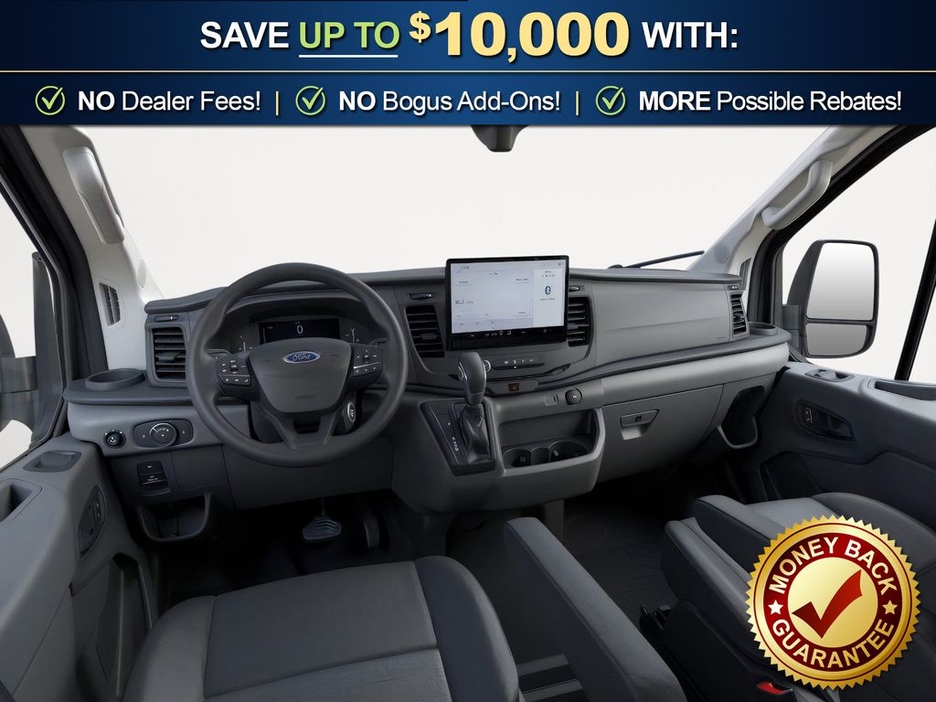 Oxford White 2026 Ford Transit-150 CMF RWD 10-Speed Automatic with Overdrive 3.5L V6 Flex Fuel 2 Additional Keys (4 Total), 3.73 Axle Ratio, 4 Speakers, 4-Wheel Disc Brakes, ABS brakes, Air Conditioning, AM/FM radio, AM/FM Stereo, Apple CarPlay/Android Auto, Auto High-beam Headlights, Brake assist, Cloth Front Bucket Seats, Dark Palazzo Gray Vinyl Bucket Seats, Delay-off headlights, Driver door bin, Driver's Seat Mounted Armrest, Dual front impact airbags, Dual front side impact airbags, Electronic Stability Control, Emergency communication system: 911 Assist, Exterior Parking Camera Rear, Ford Connectivity Package (1-Year Included), Front anti-roll bar, Front Bucket Seats, Front License Plate Bracket, Front reading lights, Front wheel independent suspension, Full Rear Compartment Lighting, Fully automatic headlights, Illuminated entry, Low tire pressure warning, Navigation system: Connected Navigation, Occupant sensing airbag, Overhead airbag, Panic alarm, Passenger cancellable airbag, Passenger door bin, Passenger-Side B-Pillar Assist Handle, Power door mirrors, Power steering, Power windows, Remote keyless entry, Speed control, Steering wheel mounted audio controls, SYNC 4, Tachometer, Telescoping steering wheel, Tilt steering wheel, Traction control, Variably intermittent wipers, Vinyl Front Bucket Seats, Wheels: 16" Silver Steel w/Black Hubcap.