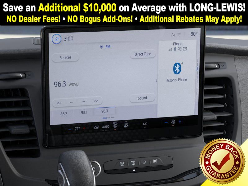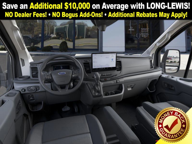 Oxford White 2026 Ford Transit-150 CMF RWD 10-Speed Automatic with Overdrive 3.5L V6 Flex Fuel 2 Additional Keys (4 Total), 3.73 Axle Ratio, 4 Speakers, 4-Wheel Disc Brakes, ABS brakes, Air Conditioning, AM/FM radio, AM/FM Stereo, Apple CarPlay/Android Auto, Auto High-beam Headlights, Brake assist, Cloth Front Bucket Seats, Dark Palazzo Gray Vinyl Bucket Seats, Delay-off headlights, Driver door bin, Driver's Seat Mounted Armrest, Dual front impact airbags, Dual front side impact airbags, Electronic Stability Control, Emergency communication system: 911 Assist, Exterior Parking Camera Rear, Ford Connectivity Package (1-Year Included), Front anti-roll bar, Front Bucket Seats, Front License Plate Bracket, Front reading lights, Front wheel independent suspension, Full Rear Compartment Lighting, Fully automatic headlights, Illuminated entry, Low tire pressure warning, Navigation system: Connected Navigation, Occupant sensing airbag, Overhead airbag, Panic alarm, Passenger cancellable airbag, Passenger door bin, Passenger-Side B-Pillar Assist Handle, Power door mirrors, Power steering, Power windows, Remote keyless entry, Speed control, Steering wheel mounted audio controls, SYNC 4, Tachometer, Telescoping steering wheel, Tilt steering wheel, Traction control, Variably intermittent wipers, Vinyl Front Bucket Seats, Wheels: 16" Silver Steel w/Black Hubcap.