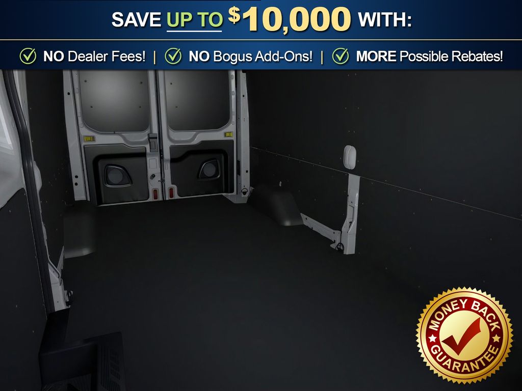 Oxford White 2026 Ford Transit-250 CMF RWD 10-Speed Automatic with Overdrive 3.5L V6 Flex Fuel 2 Additional Keys (4 Total), 253-Degree Rear Door Opening, 3.73 Axle Ratio, 4 Speakers, 4-Wheel Disc Brakes, ABS brakes, Air Conditioning, AM/FM radio, AM/FM Stereo, Apple CarPlay/Android Auto, Auto High-beam Headlights, Back Up Alarm, Brake assist, Cloth Front Bucket Seats, Dark Palazzo Gray Vinyl Bucket Seats, Delay-off headlights, Driver door bin, Driver's Seat Mounted Armrest, Dual front impact airbags, Dual front side impact airbags, Electronic Stability Control, Emergency communication system: 911 Assist, Exterior Parking Camera Rear, Ford Connectivity Package (1-Year Included), Frame Mounted Hitch Receiver, Front anti-roll bar, Front Bucket Seats, Front License Plate Bracket, Front Overhead Shelf, Front reading lights, Front wheel independent suspension, Full Rear Compartment Lighting, Fully automatic headlights, Heavy-Duty Trailer Tow Package, Illuminated entry, Large Center Console, Load Area Protection Package, Low tire pressure warning, Midship Extended Range Fuel Tank (31 Gallons), Navigation system: Connected Navigation, Occupant sensing airbag, Overhead airbag, Panic alarm, Passenger cancellable airbag, Passenger door bin, Power door mirrors, Power steering, Power windows, Remote keyless entry, Speed control, Steering wheel mounted audio controls, SYNC 4, Tachometer, Telescoping steering wheel, Tilt steering wheel, Traction control, Variably intermittent wipers, Vinyl Front Bucket Seats.