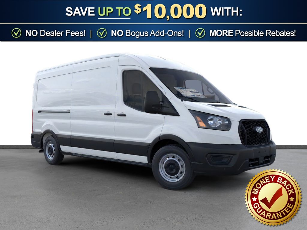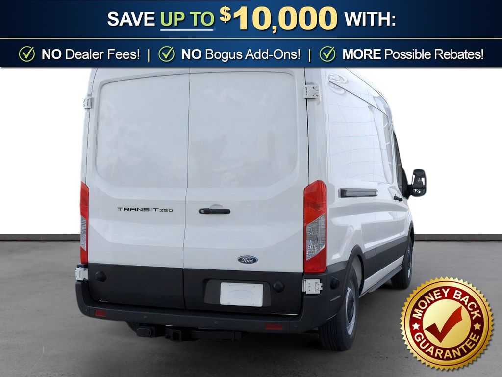 Oxford White 2026 Ford Transit-250 CMF RWD 10-Speed Automatic with Overdrive 3.5L V6 Flex Fuel 2 Additional Keys (4 Total), 253-Degree Rear Door Opening, 3.73 Axle Ratio, 4 Speakers, 4-Wheel Disc Brakes, ABS brakes, Air Conditioning, AM/FM radio, AM/FM Stereo, Apple CarPlay/Android Auto, Auto High-beam Headlights, Back Up Alarm, Brake assist, Cloth Front Bucket Seats, Dark Palazzo Gray Vinyl Bucket Seats, Delay-off headlights, Driver door bin, Driver's Seat Mounted Armrest, Dual front impact airbags, Dual front side impact airbags, Electronic Stability Control, Emergency communication system: 911 Assist, Exterior Parking Camera Rear, Ford Connectivity Package (1-Year Included), Frame Mounted Hitch Receiver, Front anti-roll bar, Front Bucket Seats, Front License Plate Bracket, Front Overhead Shelf, Front reading lights, Front wheel independent suspension, Full Rear Compartment Lighting, Fully automatic headlights, Heavy-Duty Trailer Tow Package, Illuminated entry, Large Center Console, Load Area Protection Package, Low tire pressure warning, Midship Extended Range Fuel Tank (31 Gallons), Navigation system: Connected Navigation, Occupant sensing airbag, Overhead airbag, Panic alarm, Passenger cancellable airbag, Passenger door bin, Power door mirrors, Power steering, Power windows, Remote keyless entry, Speed control, Steering wheel mounted audio controls, SYNC 4, Tachometer, Telescoping steering wheel, Tilt steering wheel, Traction control, Variably intermittent wipers, Vinyl Front Bucket Seats.