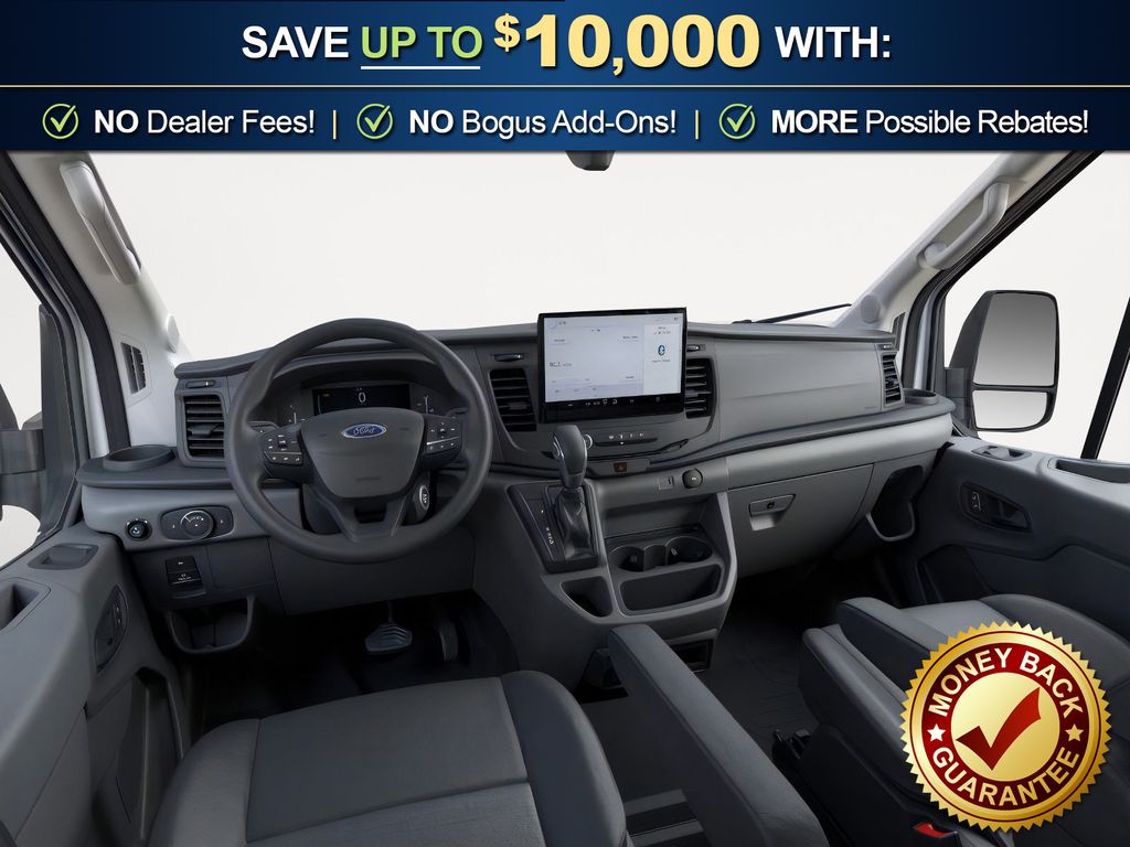 Oxford White 2026 Ford Transit-250 CMF RWD 10-Speed Automatic with Overdrive 3.5L V6 Flex Fuel 3.73 Axle Ratio, 4 Speakers, 4-Wheel Disc Brakes, ABS brakes, Air Conditioning, AM/FM radio, AM/FM Stereo, Apple CarPlay/Android Auto, Auto High-beam Headlights, Brake assist, Dark Palazzo Gray Vinyl Bucket Seats, Delay-off headlights, Driver door bin, Driver's Seat Mounted Armrest, Dual front impact airbags, Dual front side impact airbags, Electronic Stability Control, Emergency communication system: 911 Assist, Exterior Parking Camera Rear, Ford Connectivity Package (1-Year Included), Front anti-roll bar, Front Bucket Seats, Front reading lights, Front wheel independent suspension, Fully automatic headlights, Illuminated entry, Low tire pressure warning, Navigation system: Connected Navigation, Occupant sensing airbag, Overhead airbag, Panic alarm, Passenger cancellable airbag, Passenger door bin, Power door mirrors, Power steering, Power windows, Remote keyless entry, Speed control, Steering wheel mounted audio controls, SYNC 4, Tachometer, Telescoping steering wheel, Tilt steering wheel, Traction control, Variably intermittent wipers, Vinyl Front Bucket Seats.