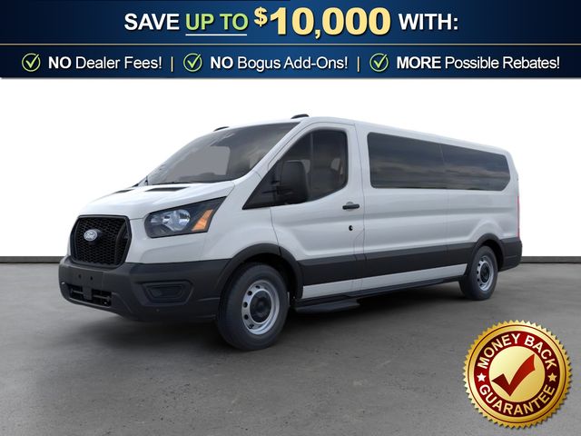 2026 Ford Transit-350 FLT Oxford White FLT RWD 10-Speed Automatic with Overdrive 3.5L V6 Flex Fuel 3.73 Axle Ratio, 3rd row seats: split-bench, 4-Wheel Disc Brakes, 4th-Row Bench Seat, 8 Speakers, ABS brakes, Air Conditioning, Apple CarPlay/Android Auto, Auto High-beam Headlights, Back Up Alarm, Brake assist, Cloth Front Bucket Seats, Delay-off headlights, Driver door bin, Driver vanity mirror, Driver's Seat Mounted Armrest, Dual front impact airbags, Dual front side impact airbags, Electronic Stability Control, Emergency communication system: 911 Assist, Extended Length Passenger Running Board, Ford Connectivity Package (1-Year Included), Front anti-roll bar, Front Bucket Seats, Front License Plate Bracket, Front reading lights, Front wheel independent suspension, Illuminated entry, Large Center Console, Low tire pressure warning, Navigation system: Connected Navigation, Occupant sensing airbag, Overhead airbag, Panic alarm, Passenger door bin, Passenger seat mounted armrest, Passenger vanity mirror, Power door mirrors, Power steering, Power windows, Rain sensing wipers, Rear air conditioning, Rear window defroster, Remote keyless entry, Speed control, Steering wheel mounted audio controls, SYNC 4, Tachometer, Telescoping steering wheel, Tilt steering wheel, Traction control, Variably intermittent wipers, Wheels: 16" Steel with Full Silver Cover.
