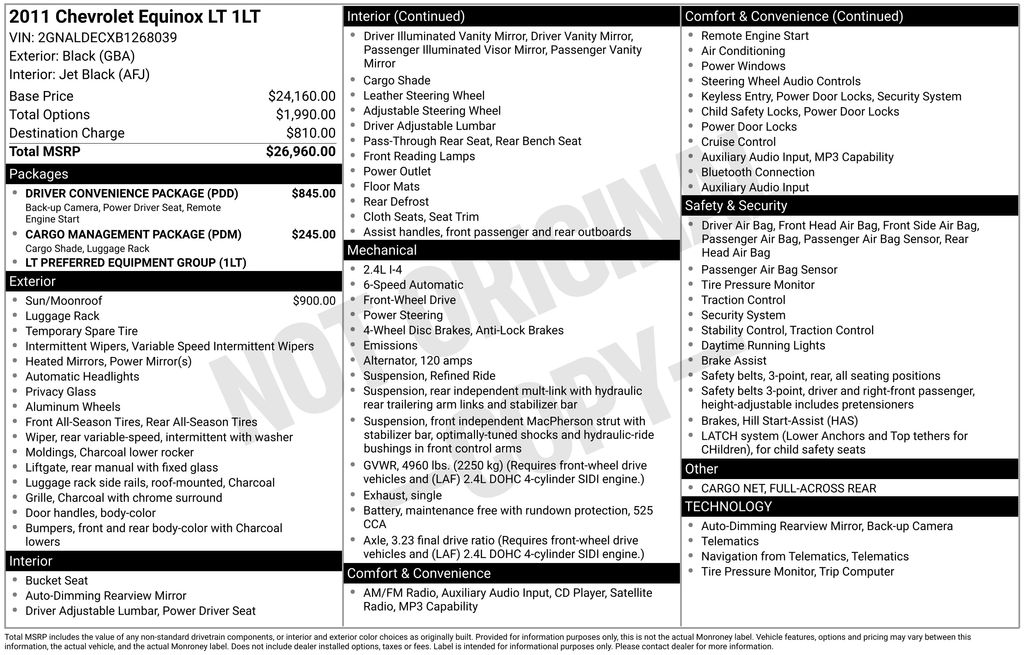 2011 Chevrolet Equinox LT SUV 4-Cylinder SIDI DOHC