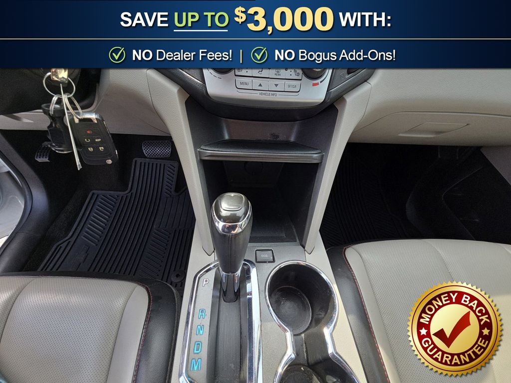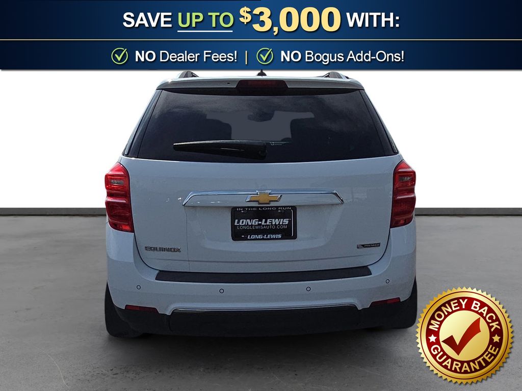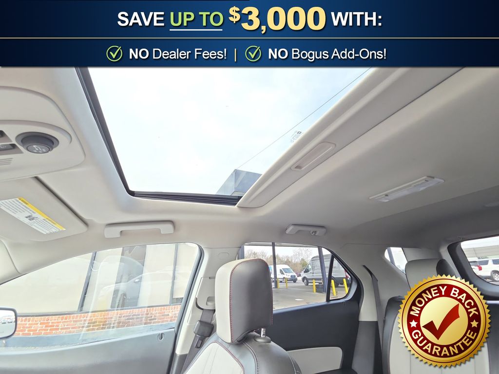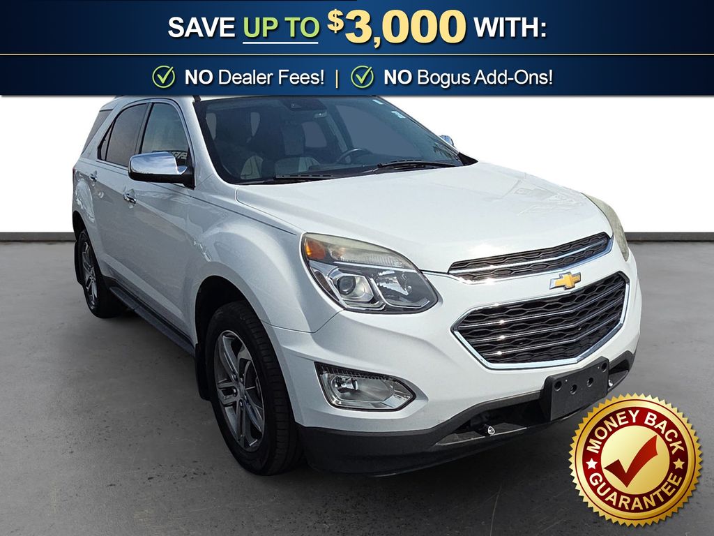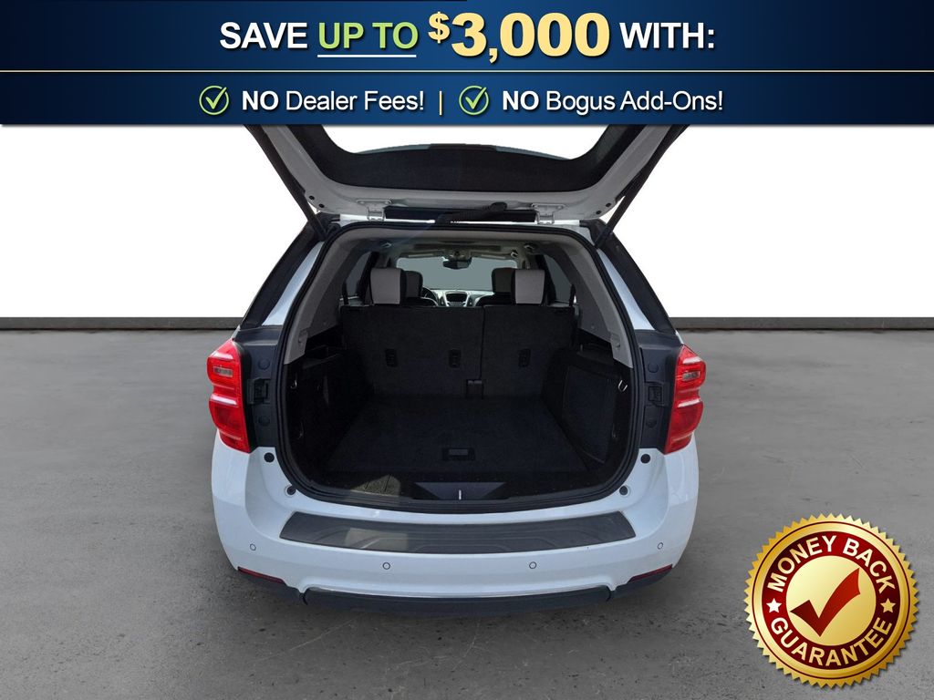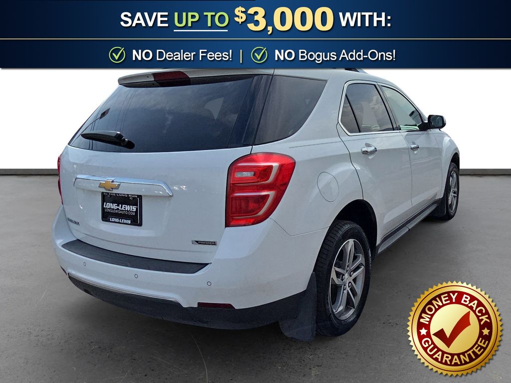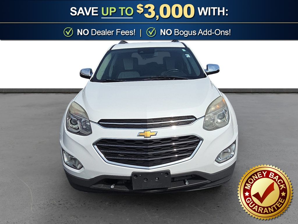 18" Aluminum Wheels, 3.23 Axle Ratio, 4-Wheel Disc Brakes, 6 Speaker Audio System Feature, 6 Speakers, 8-Way Power Driver Seat Adjuster, 8-Way Power Front Passenger Seat Adjuster, ABS brakes, Air Conditioning, Alloy wheels, AM/FM radio: SiriusXM, Auto-dimming Rear-View mirror, Automatic temperature control, Bluetooth® For Phone, Brake assist, Bumpers: body-color, Compass, Delay-off headlights, Deluxe Front Bucket Seats, Driver Confidence Package, Driver Confidence Package II, Driver door bin, Driver vanity mirror, Dual front impact airbags, Dual front side impact airbags, E10 Fuel Capable, Electronic Stability Control, Emergency communication system: OnStar Guidance, Enhanced Convenience Package, Exterior Parking Camera Rear, Forward Collision Alert, Four wheel independent suspension, Front anti-roll bar, Front Bucket Seats, Front Center Armrest, Front fog lights, Front License Plate Bracket, Front reading lights, Fully automatic headlights, Heated door mirrors, Heated Driver & Front Passenger Seats, Heated front seats, Illuminated entry, Lane Departure Warning System, Low tire pressure warning, Memory seat, Occupant sensing airbag, Outside temperature display, Overhead airbag, Panic alarm, Passenger door bin, Passenger vanity mirror, Perforated Leather-Appointed Seat Trim, Pioneer Premium Audio System Feature, Power door mirrors, Power driver seat, Power Programmable Rear Liftgate, Power steering, Power Tilt-Sliding Sunroof w/Express-Open, Power windows, Preferred Equipment Group 1LZ, Premium audio system: Chevrolet MyLink, Radio data system, Radio: Chevrolet MyLink Audio System, Radio: Chevrolet MyLink Audio System w/Navigation, Rear anti-roll bar, Rear Cross-Traffic Alert, Rear Park Assist, Rear seat center armrest, Rear window defroster, Rear window wiper, Remote keyless entry, Roof rack: rails only, Security system, Side Blind Zone Alert, SiriusXM Satellite Radio, Speed control, Speed-sensing steering, Split folding rear seat, Spoiler, Steering wheel mounted audio controls, Tachometer, Technology Package, Telescoping steering wheel, Tilt steering wheel, Traction control, Trip computer, Universal Home Remote, Variably intermittent wipers. 2017 Chevrolet Equinox Premier