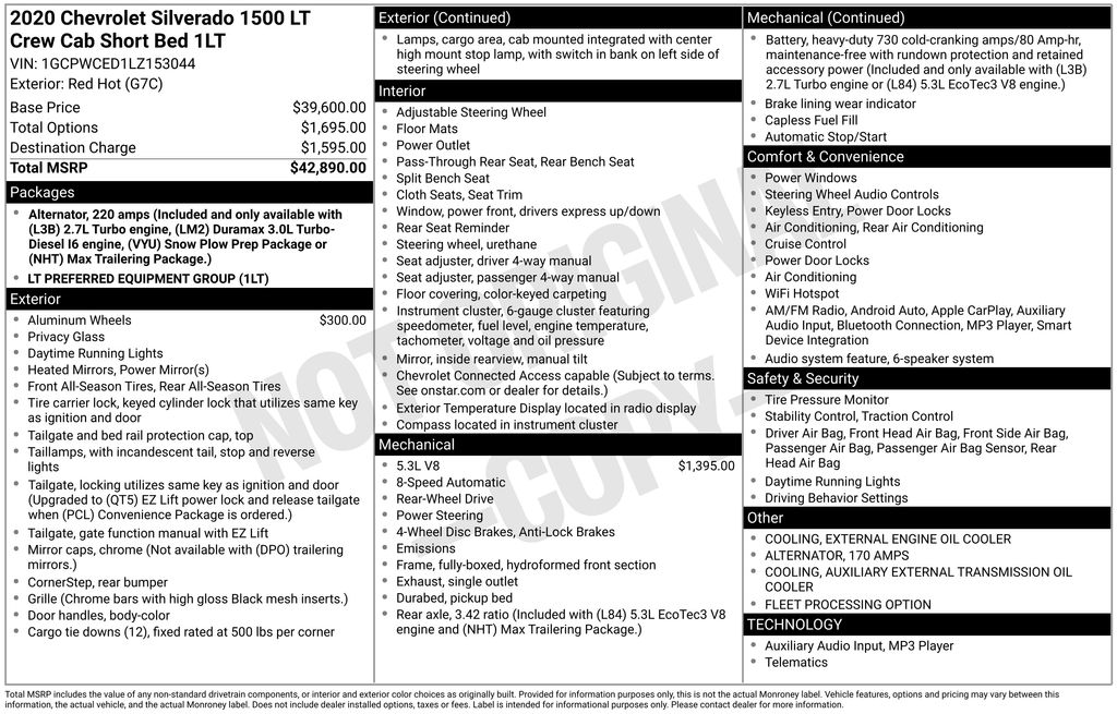 2020 Chevrolet Silverado 1500 LT Truck EcoTec3 V8