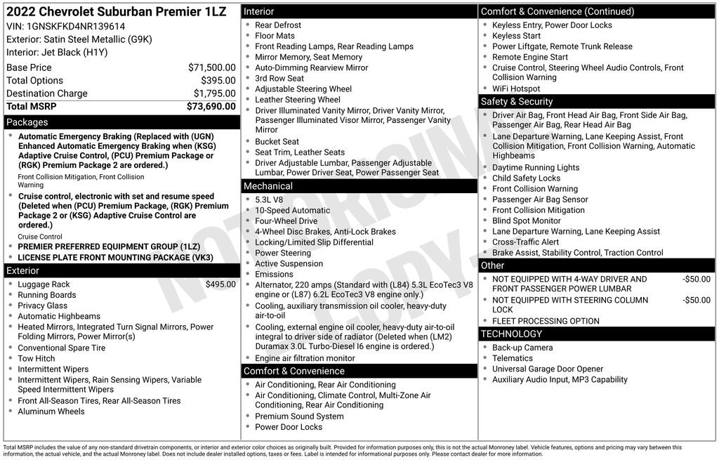 2022 Chevrolet Suburban Premier SUV EcoTec3 V8