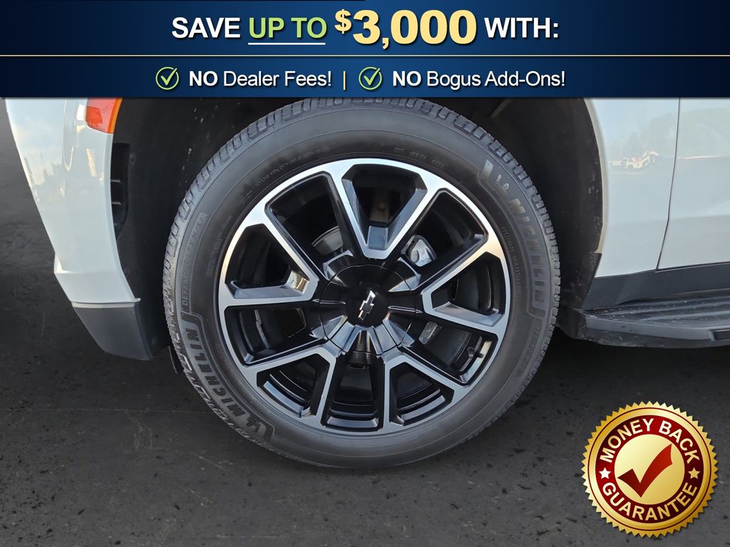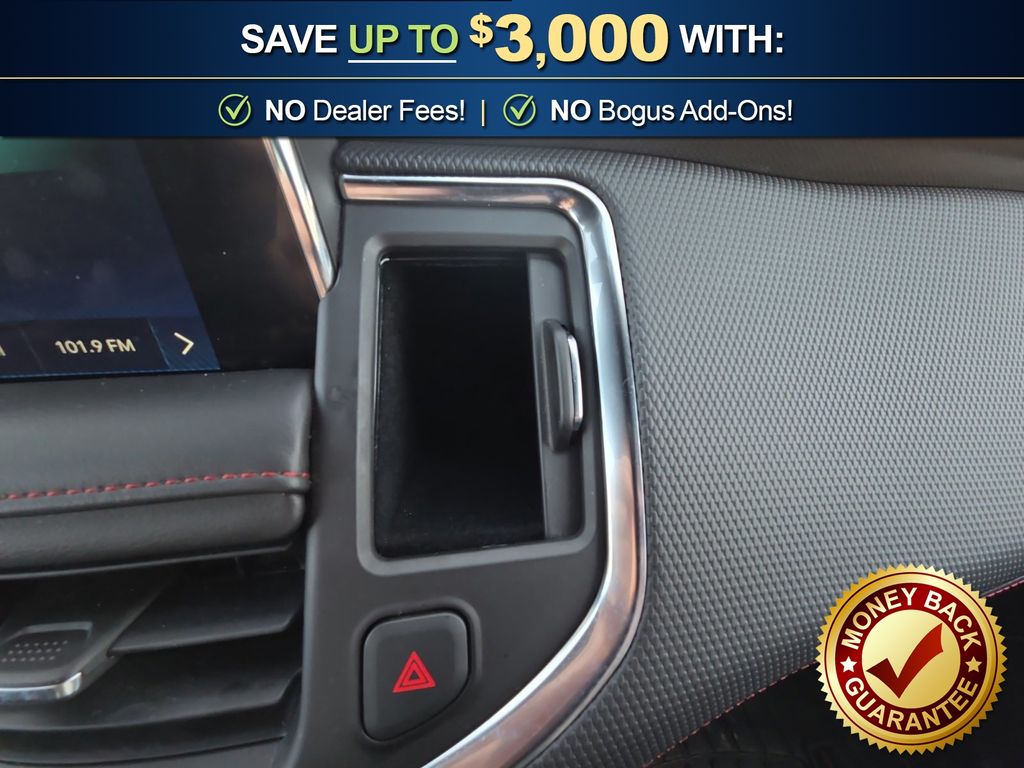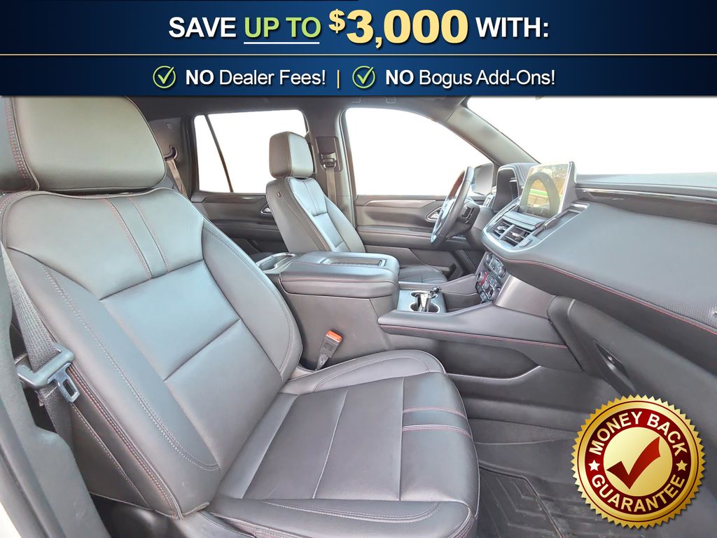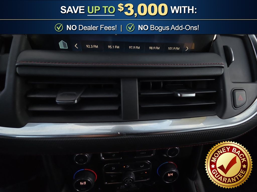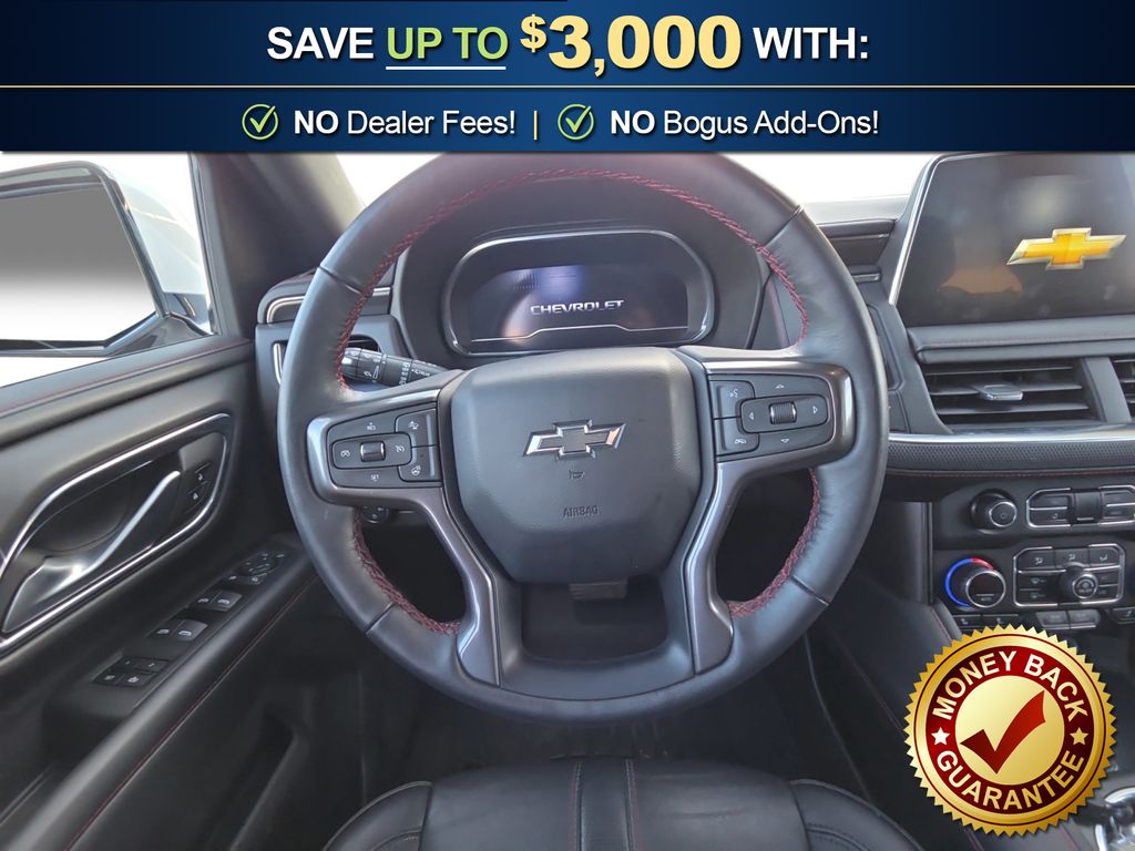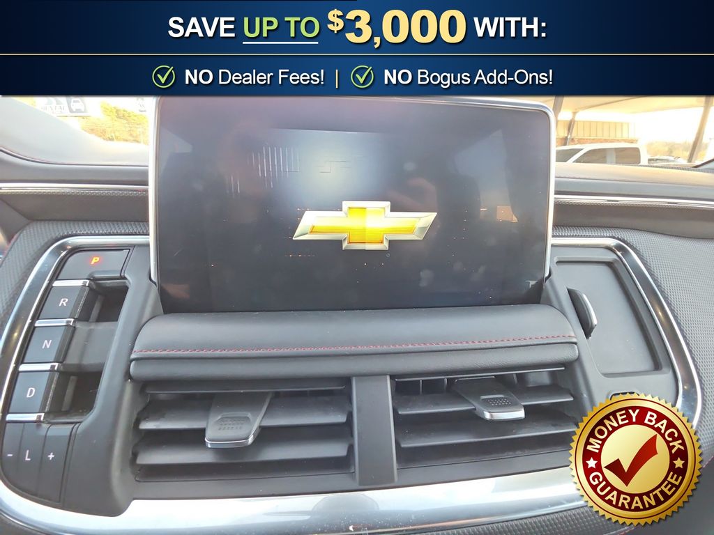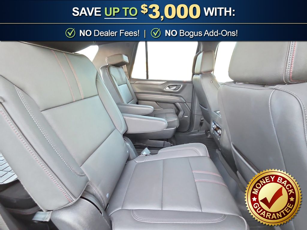 Jet Black/Victory Red Leather, 10-Way Power Driver & Passenger Seat Adjusters, 1st & 2nd Row Color-Keyed Carpeted Floor Mats, 2nd Row Pwr Release 60/40 Split-Folding Bench Seat, 3.23 Rear Axle Ratio, 3rd Row 60/40 Power-Folding Split-Bench Seat, 3rd row seats: split-bench, 4-Wheel Disc Brakes, 9 Speakers, ABS brakes, Air Conditioning, Alloy wheels, AM/FM radio: SiriusXM with 360L, Apple CarPlay/Android Auto, Auto High-beam Headlights, Auto-Dimming Inside Rear-View Mirror, Auto-dimming Rear-View mirror, Automatic Stop/Start, Automatic temperature control, Bose 9-Speaker Stereo Audio System Feature, Brake assist, Bright Front & Rear Door Sill Plates, Bumpers: body-color, Color-Keyed Carpeting Floor Covering, Compass, Delay-off headlights, Driver & Front Outboard Passenger Airbags, Driver Alert Package, Driver door bin, Driver vanity mirror, Dual front impact airbags, Dual front side impact airbags, Electronic Stability Control, Emergency communication system: OnStar and Chevrolet connected services capable, Enhanced Driver Information Center, Floor Console w/Storage Area, Four wheel independent suspension, Front anti-roll bar, Front Bucket Seats, Front Center Armrest, Front dual zone A/C, Front High-Back Reclining Bucket Seats, Front reading lights, Fully automatic headlights, Garage door transmitter, Hands-Free Rear Power Programmable Liftgate, HD Surround Vision, Heated 2nd Row Outboard Seats, Heated door mirrors, Heated Driver & Front Passenger Seats, Heated front seats, Heated Steering Wheel, Illuminated entry, Infotainment Display, Lane Change Alert w/Side Blind Zone Alert, Leather steering wheel, Leather-Wrapped Steering Wheel, LED Daytime Running Lamps, License Plate Front Mounting Package, Low tire pressure warning, Luxury Package, Memory seat, Memory Settings, Memory Settings for Driver, Navigation System, Not Equipped w/Front & Rear Park Assist, Not Equipped w/Heated Rear Outboard Seats, Not Equipped w/Heated Steering Wheel (DISC), Not Equipped w/Heated/Ventilated Front Seats, Not Equipped w/Steering Column Lock, Occupant sensing airbag, Outside Heated Power-Adjustable Mirrors, Outside temperature display, Overhead airbag, Overhead console, Panic alarm, Passenger door bin, Passenger vanity mirror, Perforated Leather Seat Trim, Power door mirrors, Power driver seat, Power Liftgate, Power passenger seat, Power Release 2nd Row Bucket Seats, Power steering, Power Tilt & Telescopic Steering Column, Power windows, Preferred Equipment Group 1SP, Premium audio system: Chevrolet Infotainment System 3, Premium Smooth Ride Suspension, Radio: Chevrolet Infotainment 3 Premium System, Rain sensing wipers, Rear air conditioning, Rear anti-roll bar, Rear Cross Traffic Alert, Rear Pedestrian Alert, Rear reading lights, Rear seat center armrest, Rear window defroster, Rear window wiper, Remote keyless entry, Remote Start, Roof rack: rails only, Security system, Set of 4 Wheel Locks (LPO), SiriusXM Radio w/360L, Speed control, Speed-sensing steering, Split folding rear seat, Spoiler, Start/Stop System Disable Button, Steering wheel mounted audio controls, Tachometer, Telescoping steering wheel, Tilt steering wheel, Traction control, Trip computer, Universal Home Remote, Variably intermittent wipers, Voltmeter, Wheels: 22" x 9" Bright Machined, Wireless Charging, Jet Black/Victory Red Leather. 2022 Chevrolet Tahoe RST