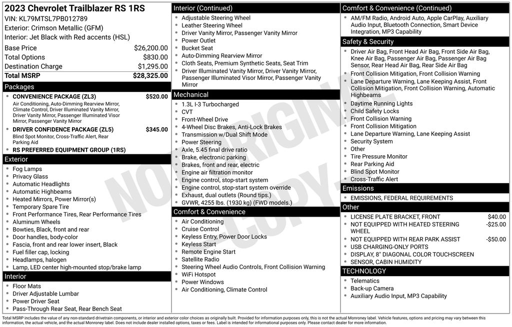 2023 Chevrolet Trailblazer RS SUV Ecotec Turbo DOHC SIDI w/VVT
