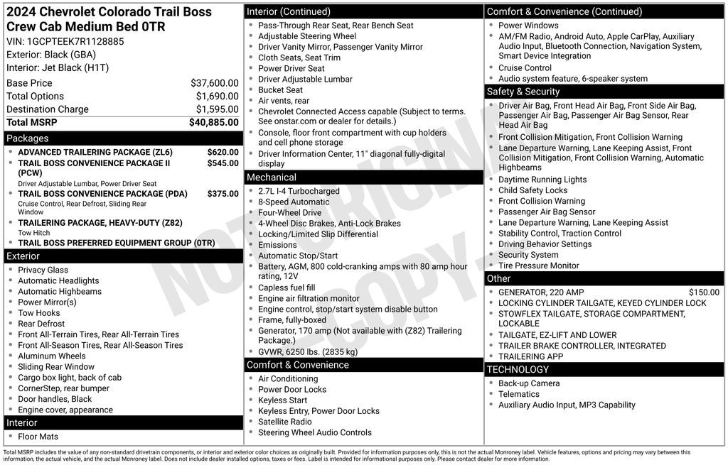 2024 Chevrolet Colorado Trail Boss 4WD 8-Speed Automatic 2.7L I4 Turbocharged DOHC 16V LEV3-ULEV50 310hp Black