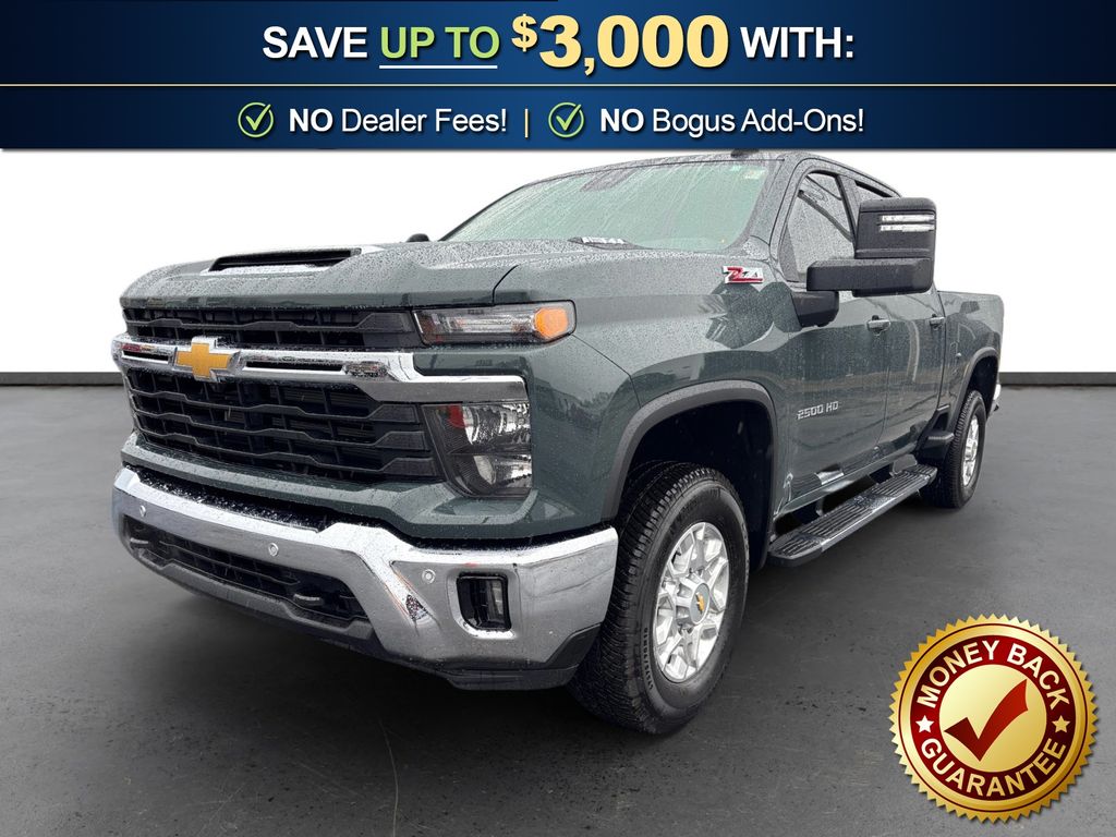 2025 Chevrolet Silverado 2500HD LT Cypress Gray LT 4WD 10-Speed Automatic 6.6L V8 10-Speed Automatic, 4WD, Black Leather, 10-Way Power Driver Seat Adjuster with Lumbar, 120-Volt Bed Mounted Power Outlet, 120-Volt Interior Power Outlet, 17" Machined Aluminum Wheels, 170 Amp Alternator, 2 Charge/Data USB Ports Inside Center Console, 2-Speed Electronic Shift Transfer Case, 3.73 Rear Axle Ratio, 4-Way Manual Driver Seat Adjuster, 4-Wheel Disc Brakes, 6 Speakers, 6-Speaker Audio System, 720 Cold-Cranking Amps Heavy-Duty Battery, ABS brakes, Air Conditioning, Alloy wheels, AM/FM radio: SiriusXM with 360L, Apple CarPlay/Android Auto, Auto High-beam Headlights, Auto-Dimming Inside Rear-View Mirror, Bed View Camera with Two Trailer Camera Provisions, Black Chevytec Spray-on Bedliner, Black Mirror Caps, Bluetooth® For Phone, Brake assist, Bumpers: chrome, Chevrolet Connected Access Capable, Cloth Rear Seat with Storage Package, Cloth Seat Trim, Color-Keyed Carpeting Floor Covering, Compass, Convenience Package, Convenience Package II, Deep-Tinted Glass, Delay-off headlights, Driver door bin, Driver vanity mirror, Dual front impact airbags, Dual front side impact airbags, Dual-Zone Automatic Climate Control, Durabed Pickup Bed, Electric Rear-Window Defogger, Electronic Cruise Control with Set and Resume Speed, Electronic Stability Control, Emergency communication system: OnStar, EZ Lift Power Lock and Release Tailgate, Floor-Mounted Center Console, Front 40/20/40 Split-Bench Seats with Lockable Storage, Front anti-roll bar, Front Bucket Seats, Front Center Armrest w/Storage, Front LED Fog Lamps, Front License Plate Kit, Front reading lights, Front Rubberized Vinyl Floor Mats, Front wheel independent suspension, Fully automatic headlights, Halogen Reflector Headlamps, HD Rear Vision Camera, HD Surround Vision, Heat Package, Heated and Auto-Dimming Vertical Trailering Mirrors, Heated door mirrors, Heated Driver and Front Outboard Passenger Seating, Heated Steering Wheel, Heated Vertical Trailering Mirrors, Hill Descent Control, Hitch Guidance with Hitch View, Illuminated entry, in-Vehicle Trailering App System, Keyless Open and Start, Leather Package, LED Cargo Area Lighting, Low tire pressure warning, Manual Tilt and Telescoping Steering Column, Occupant sensing airbag, OnStar Services Capable, Outside temperature display, Overhead airbag, Overhead console, Panic alarm, Passenger door bin, Passenger vanity mirror, Power Door Locks, Power door mirrors, Power Front Windows with Driver Express Up/Down, Power Front Windows with Passenger Express Down, Power Rear Windows with Express Down, Power Sliding Rear Window with Defogger, Power steering, Power Up/Down Tailgate Function with Power Lock and Release, Power windows, Preferred Equipment Group 1LT, Premium audio system: Chevrolet Infotainment 3 Premium, Push Button Start, Radio: Chevrolet Infotainment 3 Premium System, Rear 60/40 Folding Bench Seat (folds Up), Rear Cross Traffic Alert, Rear reading lights, Rear Rubberized Vinyl Floor Mats, Rear step bumper, Rear Wheelhouse Liners, Remote keyless entry, Remote Start Package, Remote Vehicle Starter System, Safety Package, SiriusXM with 360L Trial Subscription, Speed control, Split folding rear seat, Standard Tailgate, Steering Wheel Audio Controls, Steering wheel mounted audio controls, Suspension Package, Tachometer, Tilt steering wheel, Traction control, Trailer Camera Provisions, Trailer Side Blind Zone Alert, Trip computer, Turn signal indicator mirrors, Ultrasonic Front and Rear Park Assist, Unauthorized Entry Theft-Deterrent System, Universal Home Remote, Up-Level Rear Seat with Storage Package, Variably intermittent wipers, Voltmeter, Wheels: 18" Machined Aluminum with Silver Painted Accents, Wi-Fi Hotspot Capable, Wireless Charging, Wireless Phone Projection, Wrapped Steering Wheel, Z71 Off-Road Package, 10-Speed Automatic, 4WD, Black Leather.
