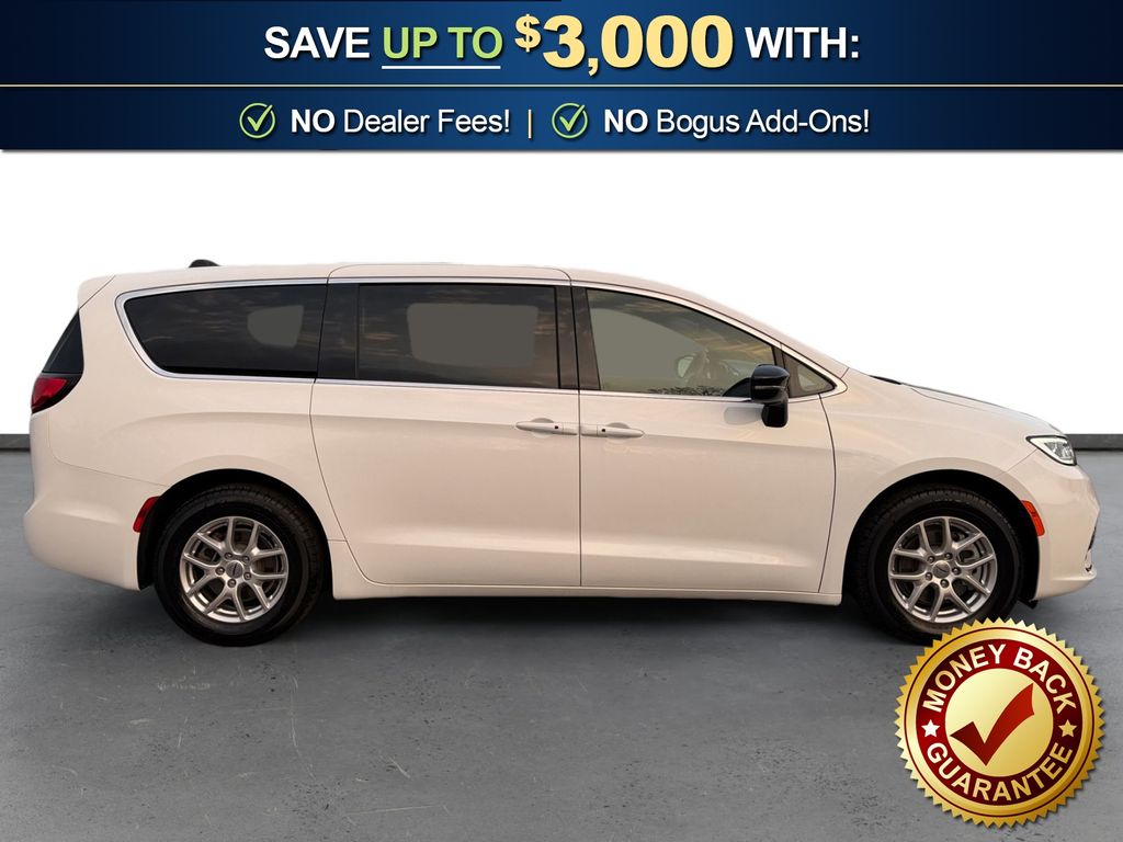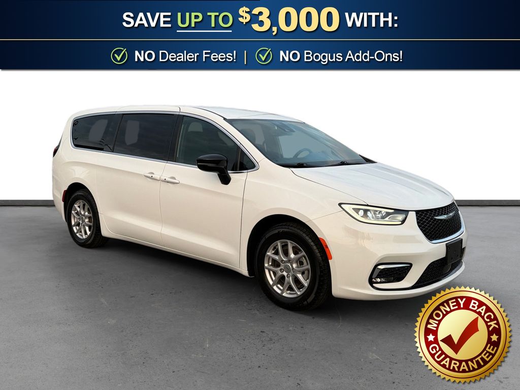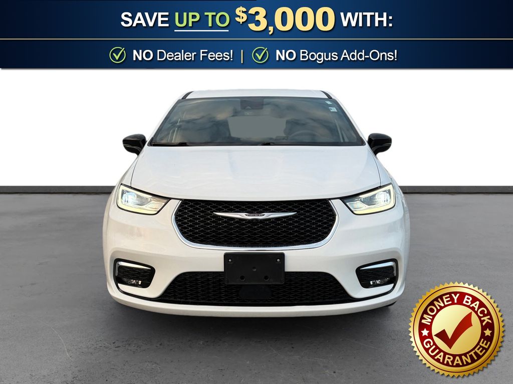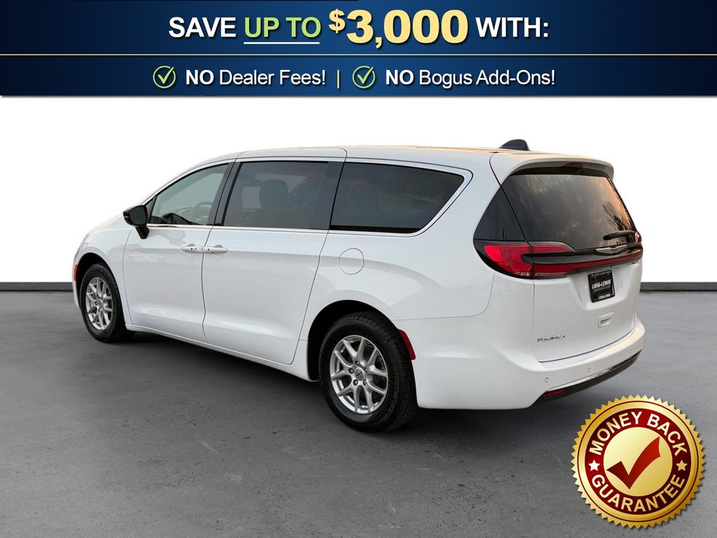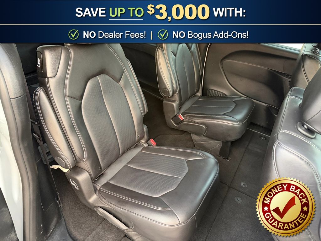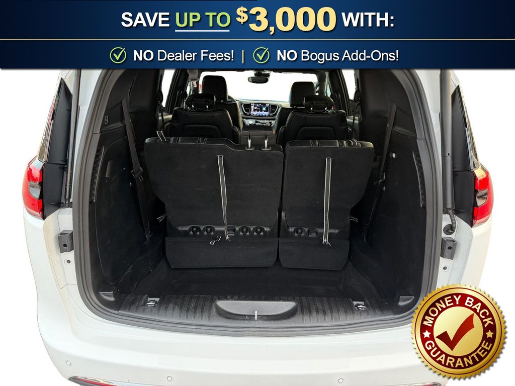 10.1" Touchscreen Display, 17" x 7.0" Aluminum Wheels, 3.25 Axle Ratio, 3rd row seats: split-bench, 4-Wheel Disc Brakes, 4G LTE Wi-Fi Hot Spot, 6 Speakers, ABS brakes, Air Conditioning, Alloy wheels, AM/FM radio: SiriusXM, Apple CarPlay, Apple CarPlay/Android Auto, Auto-dimming Rear-View mirror, Automatic temperature control, Black Seats, Brake assist, Bumpers: body-color, Caprice Leatherette Bucket Seats, Compass, Delay-off headlights, Disassociated Touchscreen Display, Driver door bin, Driver vanity mirror, Driver's Seat Mounted Armrest, Dual front impact airbags, Dual front side impact airbags, Electronic Stability Control, Emergency communication system: Chrysler Connect, For Details, Visit DriveUconnect.com, Four wheel independent suspension, Front anti-roll bar, Front Bucket Seats, Front dual zone A/C, Front Fascia Air Deflectors, Front fog lights, Front reading lights, Fully automatic headlights, Garage door transmitter, Google Android Auto, GPS Antenna Input, Heated door mirrors, Heated front seats, Heated steering wheel, Illuminated entry, Integrated Active Noise Cancellation, Integrated Center Stack Radio, Knee airbag, Low tire pressure warning, Manufacturer's Statement of Origin, Memory seat, Occupant sensing airbag, Outside temperature display, Overhead airbag, Overhead console, Panic alarm, ParkView Rear Back-Up Camera, Passenger door bin, Passenger seat mounted armrest, Passenger vanity mirror, Power door mirrors, Power driver seat, Power Liftgate, Power steering, Power windows, Quick Order Package 27L, Radio data system, Radio: Uconnect 5 with 10.1" Display, Rain sensing wipers, Rear air conditioning, Rear reading lights, Rear window defroster, Rear window wiper, Reclining 3rd row seat, Remote keyless entry, Security system, SiriusXM Guardian - Included Trial (B), Speed control, Split folding rear seat, Spoiler, Steering wheel mounted audio controls, Tachometer, Telescoping steering wheel, Tilt steering wheel, Touring Suspension, Traction control, Trip computer, Turn signal indicator mirrors, USB Host Flip, Variably intermittent wipers, Voltmeter. 2025 Chrysler Pacifica Select