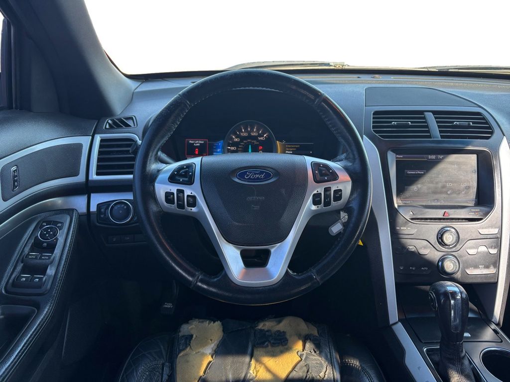 2014 Ford Explorer XLT Ingot Silver XLT FWD 6-Speed Automatic with Select-Shift 3.5L 6-Cylinder SMPI DOHC 18" Painted Aluminum Wheels, 20" Polished Aluminum Wheels, 2nd Row Bucket Seats, 3.39 Axle Ratio, 3rd row seats: split-bench, 4-Wheel Disc Brakes, 4.7 Pin Wiring Harness, 6 Speakers, ABS brakes, Air Conditioning, All Weather Floor Mats, Alloy wheels, AM/FM radio: SiriusXM, Auto-Dimming Rear-View Mirror, Bumpers: body-color, CD player, Comfort Package, Compass, Delay-off headlights, Driver Connect Package, Driver door bin, Driver vanity mirror, Dual front impact airbags, Dual front side impact airbags, Dual Zone Electronic Temperature, Dual-Panel Moonroof, Electronic Stability Control, Engine Oil Cooler, Equipment Group 202A, Four wheel independent suspension, Front anti-roll bar, Front Bucket Seats, Front Center Armrest, Front fog lights, Front reading lights, Fully automatic headlights, Heated door mirrors, Illuminated entry, Knee airbag, Leather-Trimmed Heated Bucket Seats, Low tire pressure warning, Occupant sensing airbag, Outside temperature display, Overhead airbag, Overhead console, Panic alarm, Passenger door bin, Passenger vanity mirror, Power door mirrors, Power driver seat, Power Liftgate, Power passenger seat, Power steering, Power windows, Radio data system, Radio: AM/FM Stereo w/Single CD w/Premium Audio, Radio: AM/FM Stereo w/Single CD/MP3 Capable, Rear air conditioning, Rear anti-roll bar, Rear Parking Sensors, Rear reading lights, Rear window defroster, Rear window wiper, Rear-View Camera, Remote keyless entry, Roof rack: rails only, Security system, Speed control, Speed-sensing steering, Speed-Sensitive Wipers, Split folding rear seat, Spoiler, Steering wheel mounted audio controls, SYNC, SYNC w/MyFord Communications/Entertainment System, SYNC w/MyFord Touch, Tachometer, Telescoping steering wheel, Tilt steering wheel, Traction control, Trailer Tow Package (Class III), Trip computer, Turn signal indicator mirrors, Unique Cloth Bucket Seats, Variably intermittent wipers, Voice-Activated Navigation System.