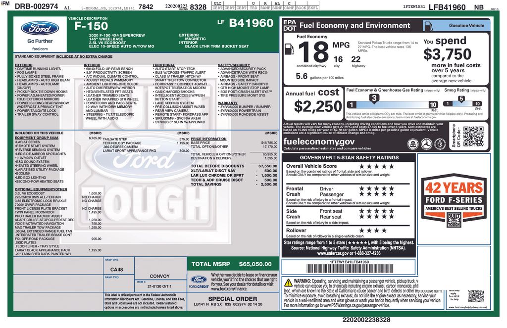 2020 Ford F-150 Lariat Truck V6 EcoBoost