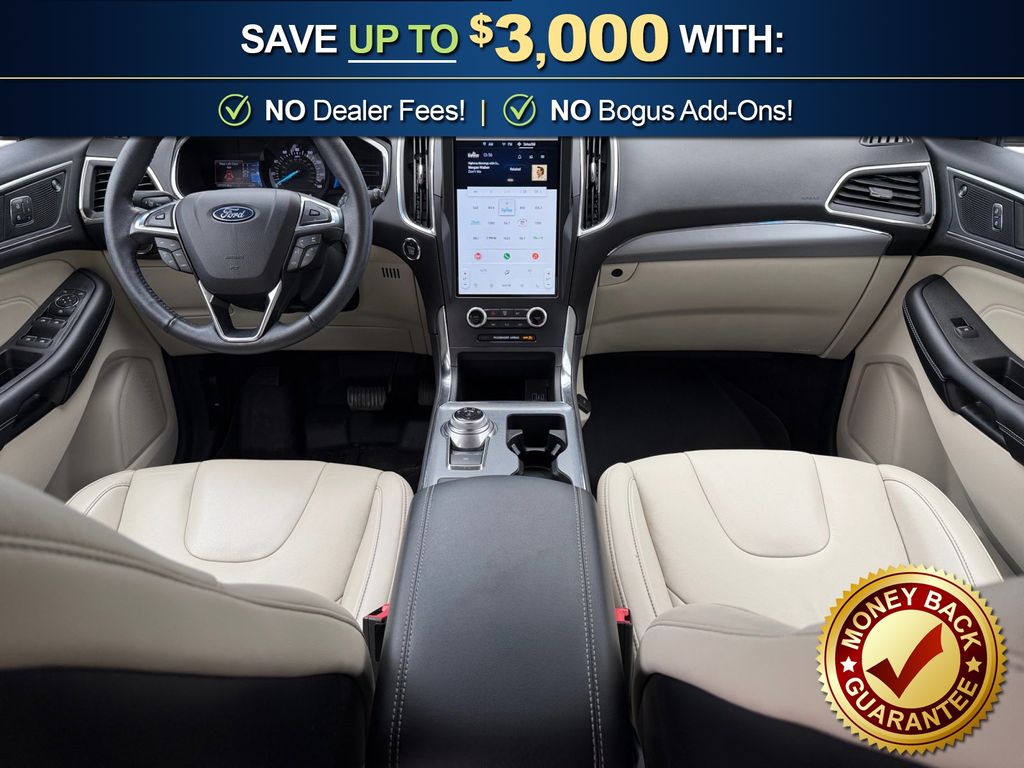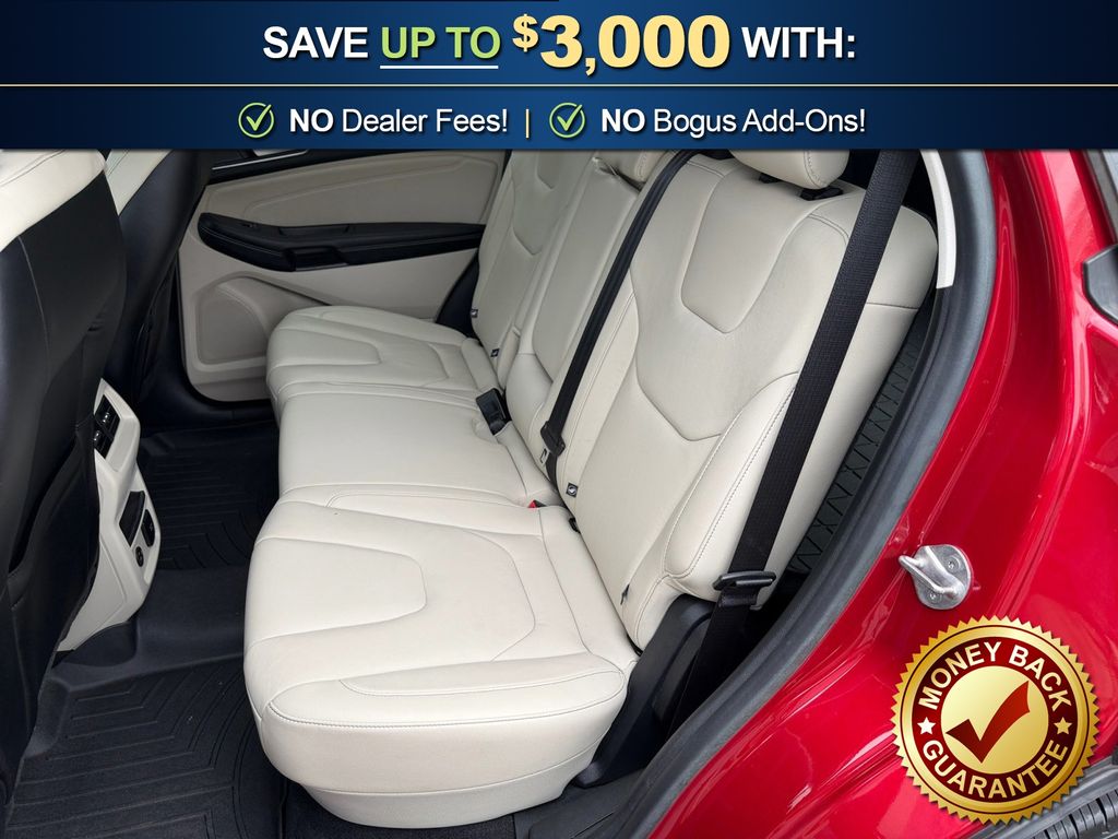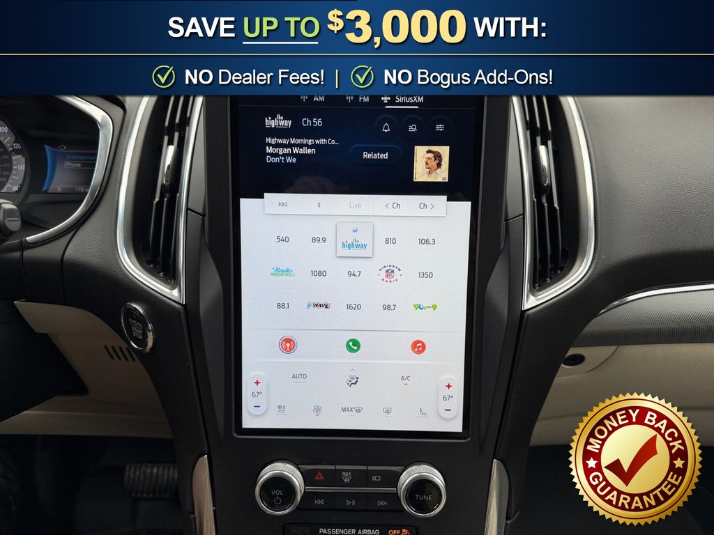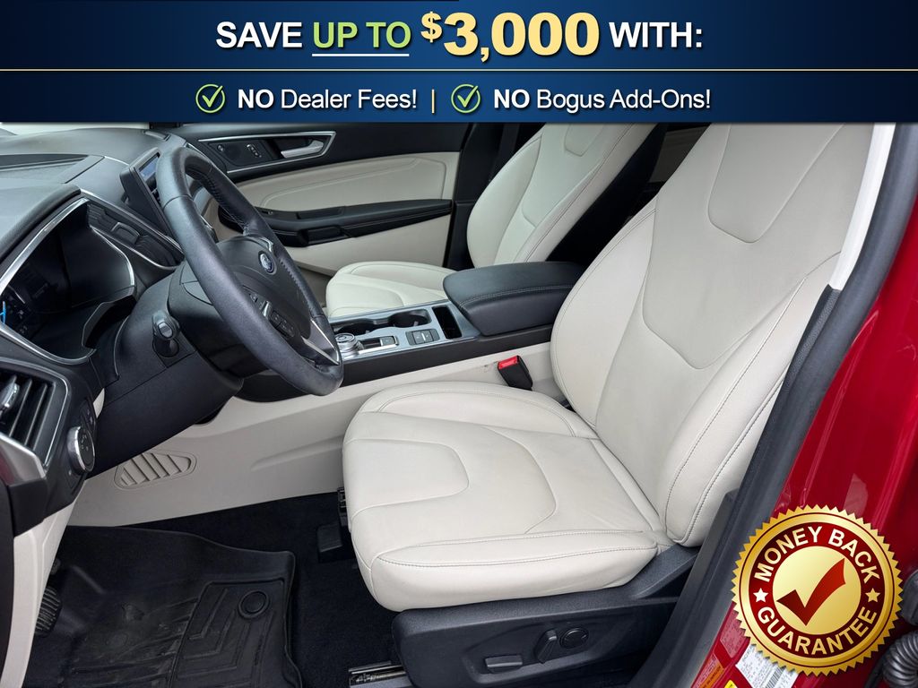 12 Speakers, 3.80 Axle Ratio, 4-Wheel Disc Brakes, ABS brakes, Air Conditioning, Alloy wheels, AM/FM radio: SiriusXM with 360L, Auto High-beam Headlights, Auto-dimming Rear-View mirror, Automatic temperature control, Brake assist, Bumpers: body-color, Compass, Delay-off headlights, Driver door bin, Driver vanity mirror, Dual front impact airbags, Dual front side impact airbags, Electronic Stability Control, Emergency communication system: SYNC 4 911 Assist, Equipment Group 300A, FordPass Connect, Four wheel independent suspension, Front anti-roll bar, Front Bucket Seats, Front Center Armrest w/Storage, Front dual zone A/C, Front fog lights, Front reading lights, Fully automatic headlights, Garage door transmitter, Heated door mirrors, Heated front seats, Heated steering wheel, Illuminated entry, Knee airbag, Leather-Trimmed Heated Sport Bucket Seats, Low tire pressure warning, Memory seat, Occupant sensing airbag, Outside temperature display, Overhead airbag, Overhead console, Panic alarm, Passenger door bin, Passenger vanity mirror, Power door mirrors, Power driver seat, Power Liftgate, Power passenger seat, Power steering, Power windows, Radio: B&O Sound System by Bang & Olufsen, Rain sensing wipers, Rear anti-roll bar, Rear reading lights, Rear seat center armrest, Rear window defroster, Rear window wiper, Remote keyless entry, Security system, Silver Roof-Rack Side Rails, SiriusXM w/360L, Speed control, Speed-Sensitive Wipers, Split folding rear seat, Spoiler, Steering wheel mounted audio controls, SYNC 4A w/Enhanced Voice Recognition, Tachometer, Telescoping steering wheel, Tilt steering wheel, Traction control, Trip computer, Turn signal indicator mirrors, Variably intermittent wipers, Wheels: 19" Luster Nickel-Painted Aluminum, Wheels: 20" Bright-Machined Aluminum. 2021 Ford Edge Titanium