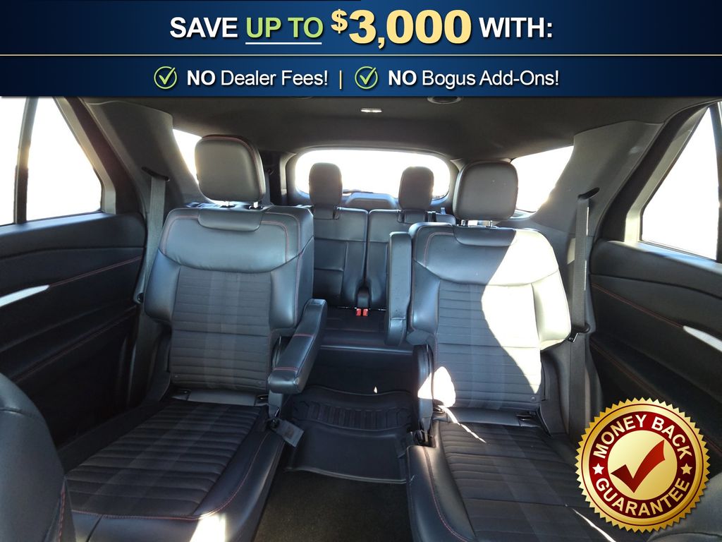 4WD, 10 Speakers, 2nd Row Captain's Chairs w/E-Z Entry & Armrest, 3.58 Non-Limited Slip Rear Axle, 3rd row seats: bench, 4-Wheel Disc Brakes, ABS brakes, Air Conditioning, Alloy wheels, AM/FM radio: SiriusXM with 360L, Apple CarPlay/Android Auto, Auto High-beam Headlights, Automatic temperature control, Brake assist, Bumpers: body-color, Compass, Delay-off headlights, Driver door bin, Driver vanity mirror, Dual front impact airbags, Dual front side impact airbags, Electronic Stability Control, Emergency communication system: 911 Assist, Equipment Group 300A Standard Package, Exterior Parking Camera Rear, Four wheel independent suspension, Front anti-roll bar, Front Bucket Seats, Front Center Armrest, Front dual zone A/C, Front fog lights, Front License Plate Bracket, Front reading lights, Fully automatic headlights, Garage door transmitter, Heated door mirrors, Heated front seats, Heated steering wheel, Heated Unique Cloth Captain's Chairs, Illuminated entry, Internet access capable: FordPass Connect 5G, Knee airbag, Leather steering wheel, Low tire pressure warning, Navigation System, Occupant sensing airbag, Outside temperature display, Overhead airbag, Overhead console, Panic alarm, Passenger door bin, Passenger vanity mirror, Power door mirrors, Power driver seat, Power Liftgate, Power passenger seat, Power steering, Power windows, Radio: B&O Sound System by Bang & Olufsen, Rear air conditioning, Rear anti-roll bar, Rear reading lights, Rear window defroster, Rear window wiper, Remote keyless entry, Security system, Speed control, Speed-sensing steering, Speed-Sensitive Wipers, Split folding rear seat, Spoiler, Steering wheel mounted audio controls, Tachometer, Telescoping steering wheel, Tilt steering wheel, Traction control, Trip computer, Variably intermittent wipers, Wheels: 20" Ebony-Painted Machined Aluminum, 4WD. 2025 Ford Explorer ST-Line