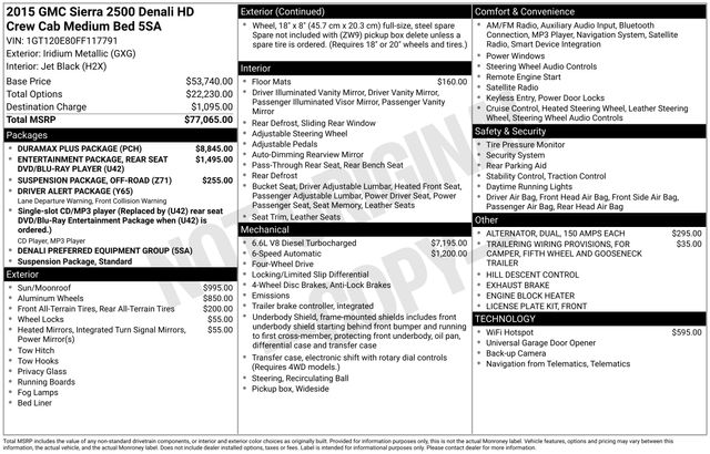 2015 GMC Sierra 2500HD Denali Truck Duramax V8 Turbodiesel