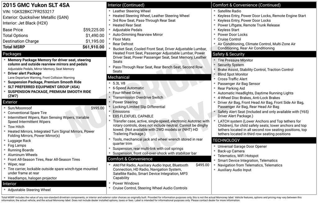 2015 GMC Yukon SLT SUV EcoTec3 V8