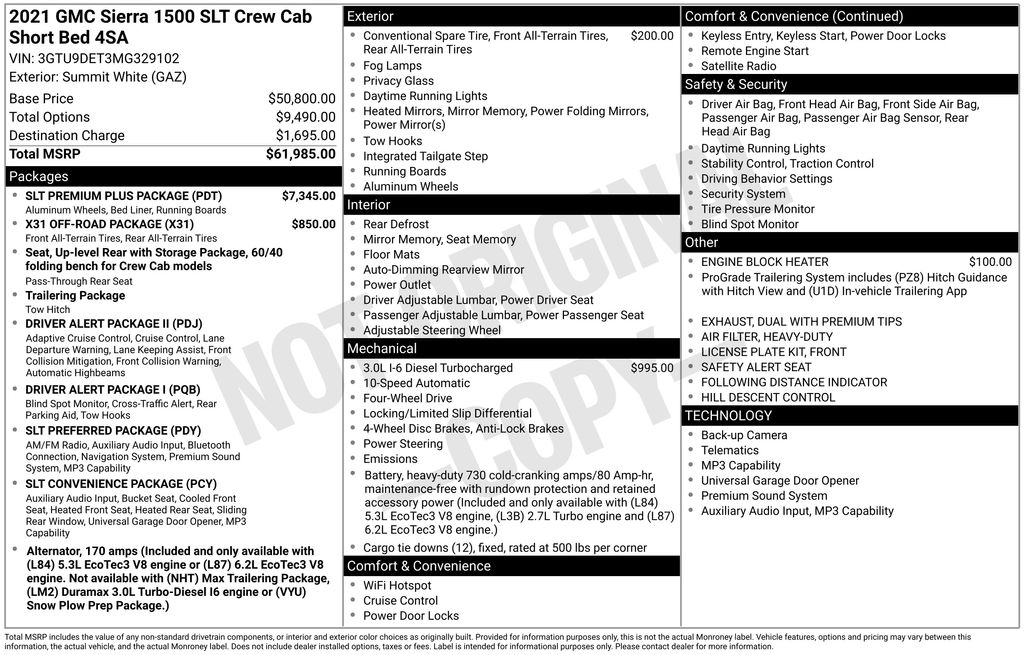2021 GMC Sierra 1500 SLT Truck Crew Cab I-6 cyl