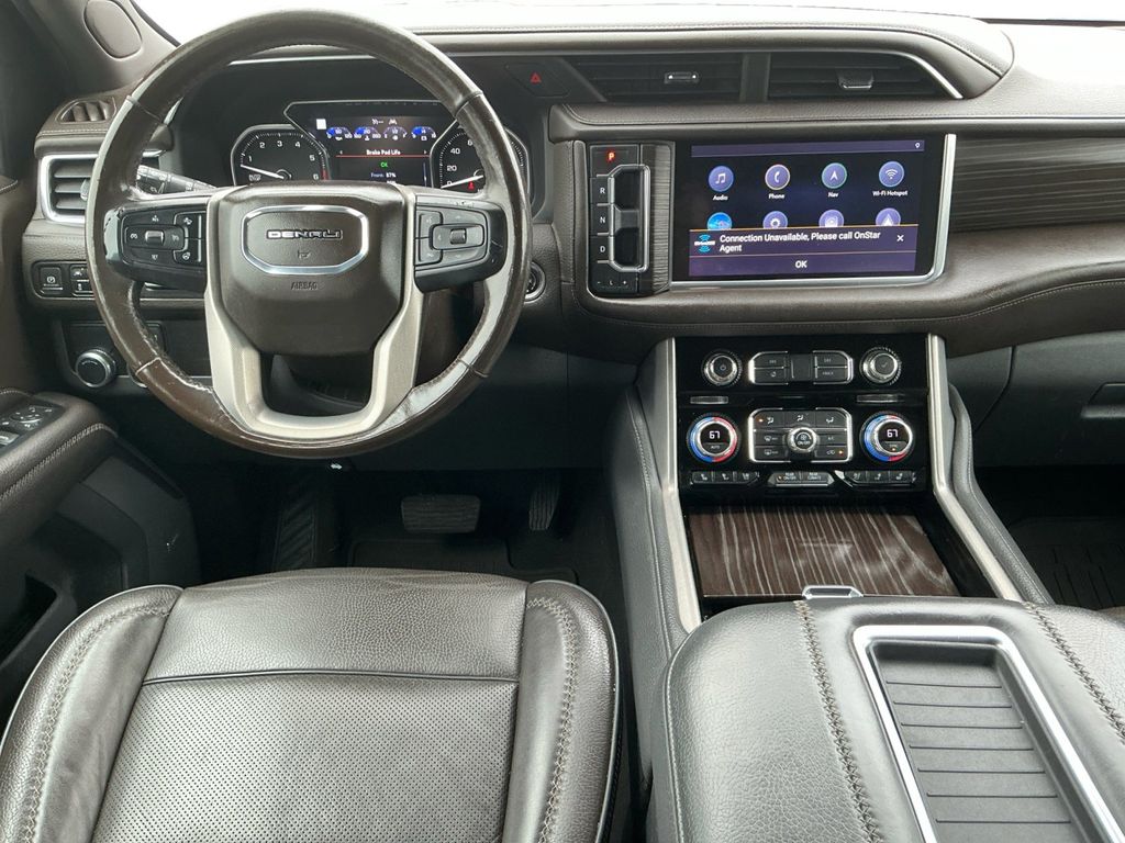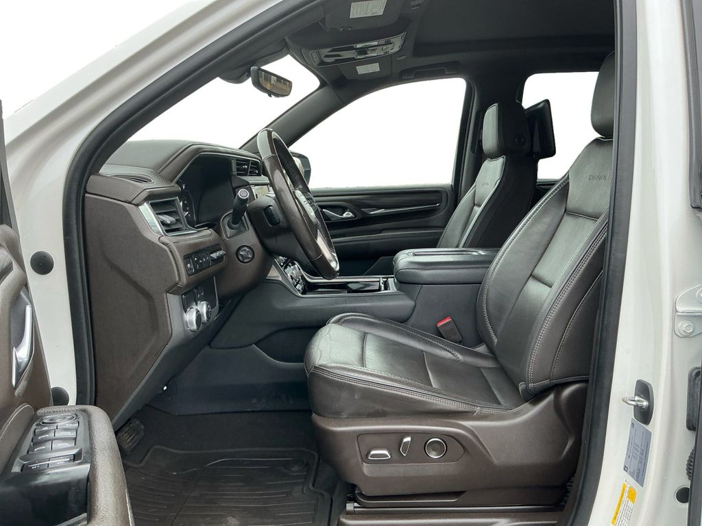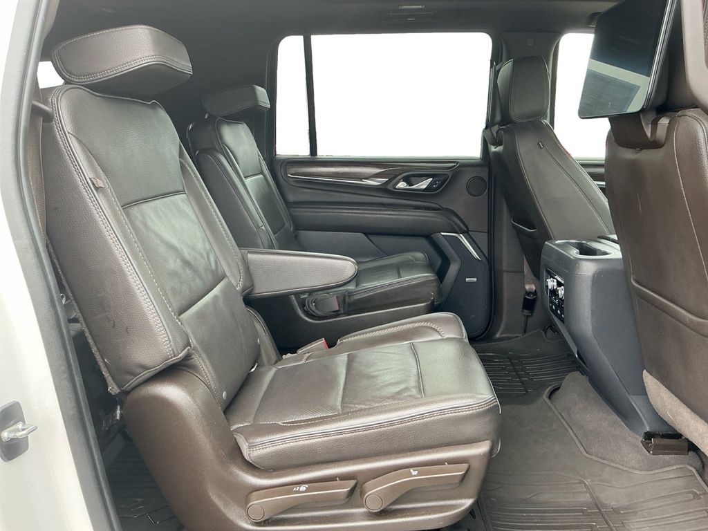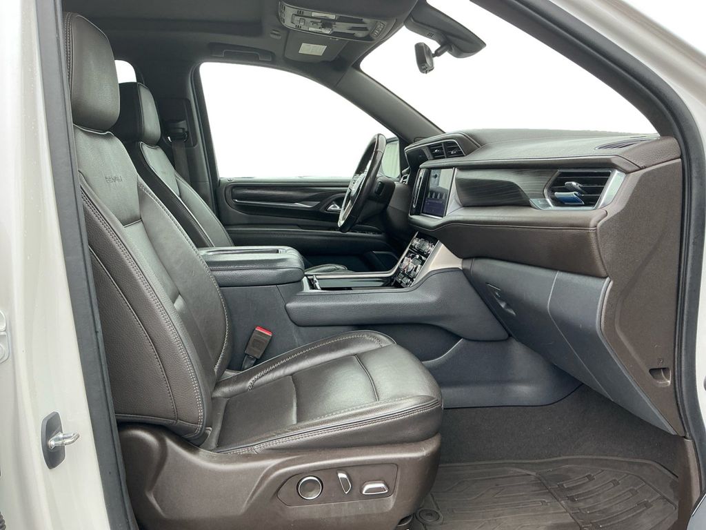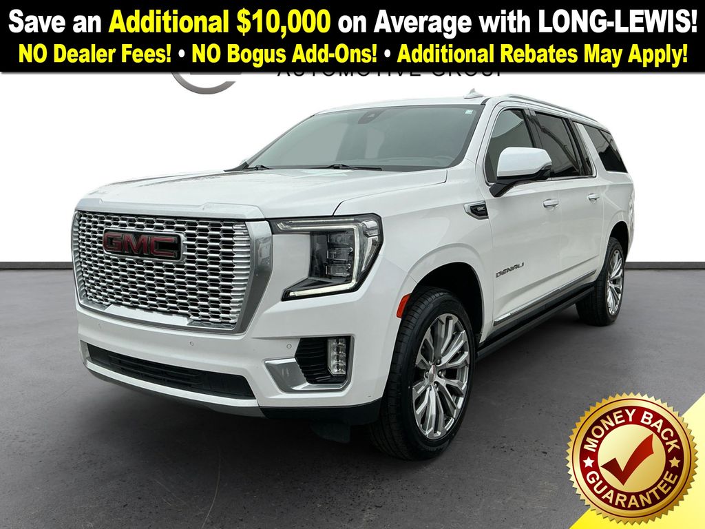 2021 GMC Yukon XL Denali White Frost Tricoat Denali RWD 10-Speed Automatic with Overdrive EcoTec3 6.2L V8 12-Way Power Seat Adjusters, 14 Speakers, 15" Diagonal Multi-Color Head-Up Display, 2 Presets For Outside Rearview Mirrors, 3.23 Rear Axle Ratio, 3rd Row 60/40 Power-Folding Split-Bench Seat, 3rd row seats: split-bench, 4-Wheel Disc Brakes, ABS brakes, Adaptive Cruise Control, Adaptive suspension, Advanced Security Package, Advanced Technology Package, Air Conditioning, All-Weather Floor Mats, Alloy wheels, AM/FM radio: SiriusXM with 360L, Apple CarPlay/Android Auto, Auto High-beam Headlights, Auto-dimming door mirrors, Auto-dimming Rear-View mirror, Auto-leveling suspension, Automatic Emergency Braking, Automatic temperature control, Bodyside moldings, Bose 14-Speaker Surround w/CenterPoint, Brake assist, Bright Front & Rear Door Sill Plates, Bumpers: body-color, Chrome Door Handles w/Body-Color Strip, Compass, Console-Mounted Safe (LPO), Delay-off headlights, Denali Premium Package, Driver door bin, Driver vanity mirror, Dual Exhaust System, Dual front impact airbags, Dual front side impact airbags, Dual-Pane Panoramic Power Sunroof, Electronic Stability Control, Emergency communication system: OnStar and GMC connected services capable, Enhanced Automatic Emergency Braking, Following Distance Indicator, Forward Collision Alert, Four wheel independent suspension, Front & Rear Park Assist, Front anti-roll bar, Front Bucket Seats, Front Center Armrest, Front dual zone A/C, Front fog lights, Front Pedestrian Braking, Front reading lights, Fully automatic headlights, Galvano Bodyside Moldings, Garage door transmitter, Glass Breakage Sensor, Hands-Free Power Programmable Rear Liftgate, HD Radio, HD Surround Vision, Heads-Up Display, Heated & Ventilated Driver & Front Passenger Seats, Heated 2nd Row Outboard Position Seats, Heated Automatic Steering Wheel, Heated door mirrors, Heated Driver & Front Passenger Seats, Heated front seats, Heated rear seats, Heated steering wheel, Illuminated entry, Illuminated Front GMC Emblem (LPO), Illuminated Mirror GMC Emblem (LPO), Illumination Package (LPO), Inside Rear-View Auto-Dimming Mirror, Inside Rearview Auto-Dimming Rear Camera Mirror, IntelliBeam Automatic High Beam On/Off, Lane Change Alert w/Side Blind Zone Alert, Lane Keep Assist w/Lane Departure Warning, Leather steering wheel, Low tire pressure warning, Magnetic Ride Control Suspension, Memory seat, Navigation System, Occupant sensing airbag, Outside Heated Power-Adjustable Mirrors, Outside temperature display, Overhead airbag, Overhead console, Panic alarm, Passenger door bin, Passenger vanity mirror, Perforated Leather Seating Surfaces, Power door mirrors, Power driver seat, Power Liftgate, Power passenger seat, Power Release 2nd Row Bucket Seats, Power steering, Power Tilt & Telescopic Steering Column, Power windows, Power-Retractable Assist Steps, Preferred Equipment Group 5SA, Radio: AM/FM/SiriusXM w/Navigation, Rain sensing wipers, Rear air conditioning, Rear anti-roll bar, Rear Camera Mirror Washer, Rear Cross Traffic Alert, Rear Pedestrian Alert, Rear reading lights, Rear Seat Media System, Rear window defroster, Rear window wiper, Remote keyless entry, Roof rack: rails only, Safety Alert Seat, Security system, SiriusXM w/360L, Speed control, Speed-sensing steering, Split folding rear seat, Spoiler, Steering wheel memory, Steering wheel mounted audio controls, Tachometer, Telescoping steering wheel, Theft-Deterrent Alarm System, Tilt steering wheel, Traction control, Trip computer, Turn signal indicator mirrors, Universal Home Remote, Variably intermittent wipers, Vehicle Inclination Sensor, Vehicle Interior Movement Sensor, Ventilated front seats, Voltmeter, Wheel Locks, Wheels: 20" x 9" 6-Spoke Polished Aluminum, Wheels: 22" x 9" Bright Machined Aluminum.