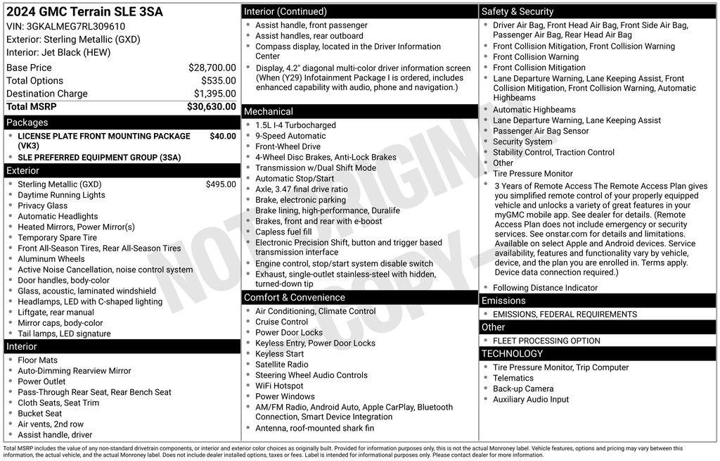 Check out this 2024 GMC Terrain SLE FWD, finished in stunning Sterling Metallic with a refined Jet Black cloth interior. Powered by a fuel-efficient 1.5L Turbo 4-cylinder engine and 9-speed automatic transmission, this Terrain delivers a smooth, confident ride thats perfect for daily commutes or weekend getaways.