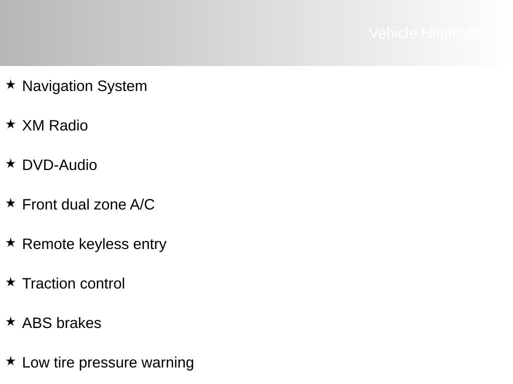 Vehicle Highlights