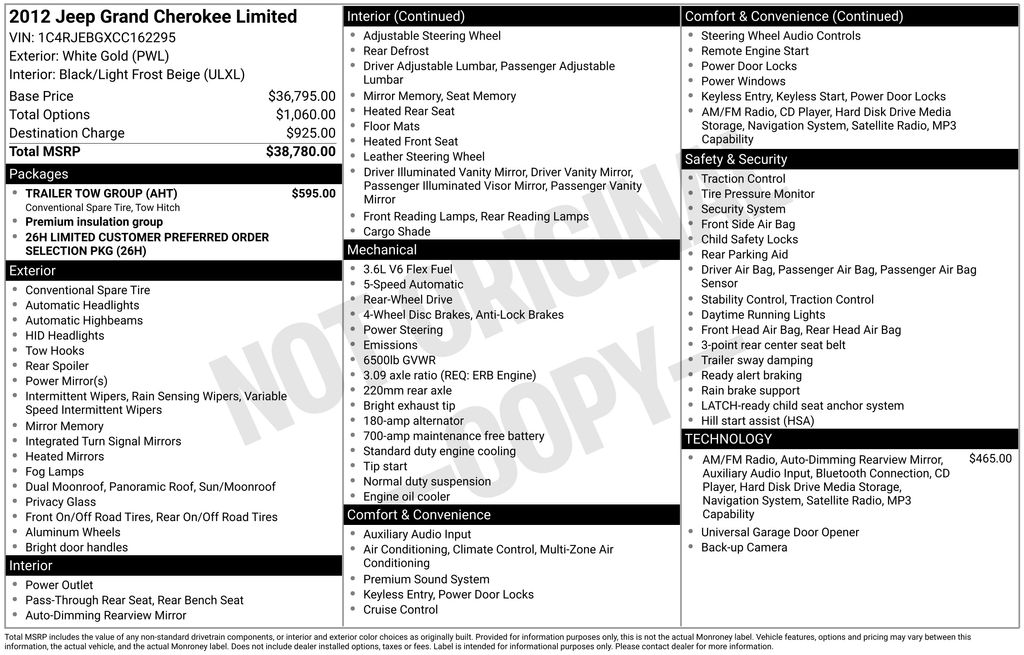 2012 Jeep Grand Cherokee Limited SUV V6 Flex Fuel 24V VVT