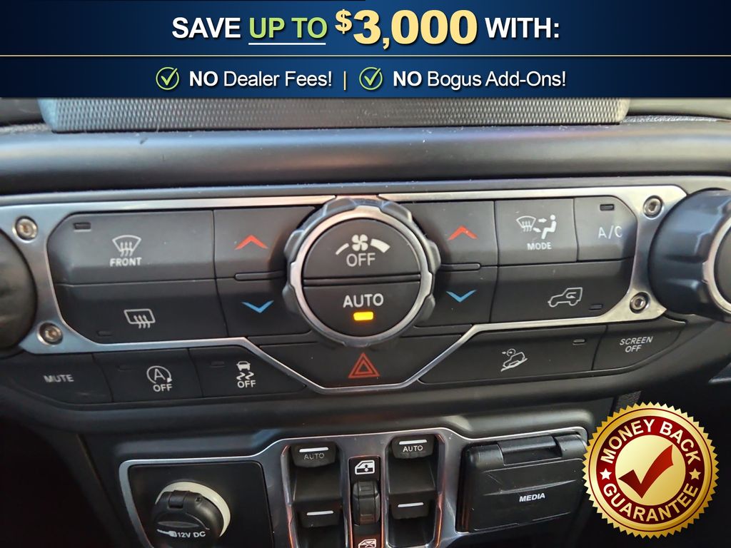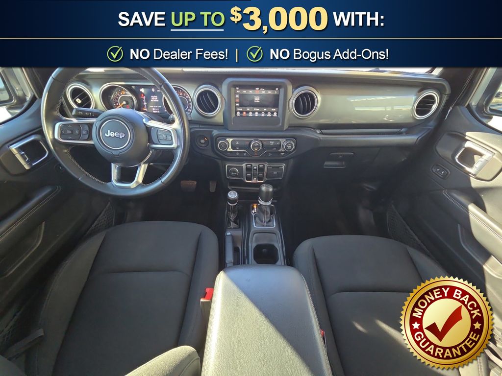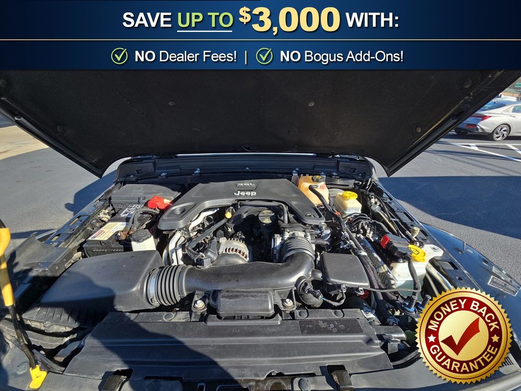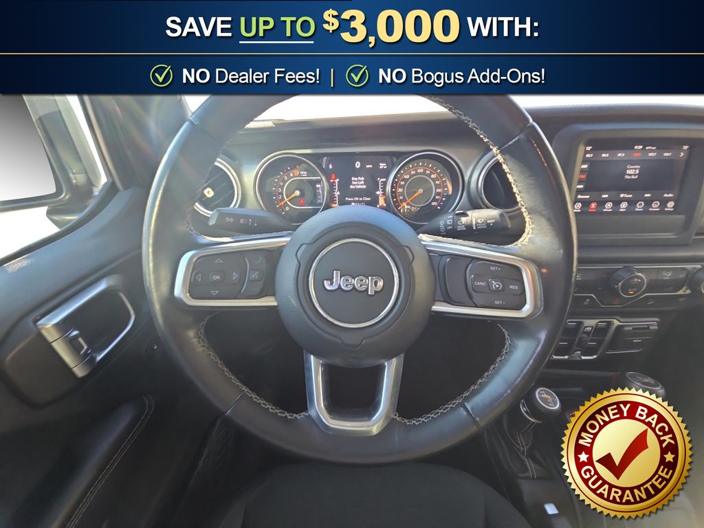 3.45 Rear Axle Ratio, 4-Wheel Disc Brakes, 8 Speakers, ABS brakes, Air Conditioning, Alloy wheels, AM/FM radio: SiriusXM, Apple CarPlay/Android Auto, Automatic temperature control, Black 3-Piece Hard Top, Brake assist, Cloth Low-Back Bucket Seats, Compass, Delay-off headlights, Driver door bin, Driver vanity mirror, Dual front impact airbags, Dual front side impact airbags, Electronic Stability Control, Freedom Panel Storage Bag, Front anti-roll bar, Front Bucket Seats, Front Center Armrest w/Storage, Front dual zone A/C, Front fog lights, Front reading lights, Fully automatic headlights, Garage door transmitter, Heated door mirrors, Heavy Duty Suspension w/Gas Shocks, Illuminated entry, Integrated roll-over protection, Leather steering wheel, Low tire pressure warning, Manufacturer's Statement of Origin (DISC), No Soft Top, Non-Lock Fuel Cap w/o Discriminator, Occupant sensing airbag, Outside temperature display, Panic alarm, ParkView Rear Back-Up Camera, Passenger door bin, Passenger vanity mirror, Power door mirrors, Power steering, Power windows, Quick Order Package 24G, Radio data system, Radio: Uconnect 4 w/7" Display, Rear anti-roll bar, Rear reading lights, Rear Window Defroster, Rear Window Wiper/Washer, Remote keyless entry, Security system, Speed control, Split folding rear seat, Steering wheel mounted audio controls, Tachometer, Telescoping steering wheel, Tilt steering wheel, Traction control, Trip computer, Variably intermittent wipers, Voltmeter, Wheels: 18" x 7.5" Polished w/Gray Spokes. 2019 Jeep Wrangler Unlimited Sahara