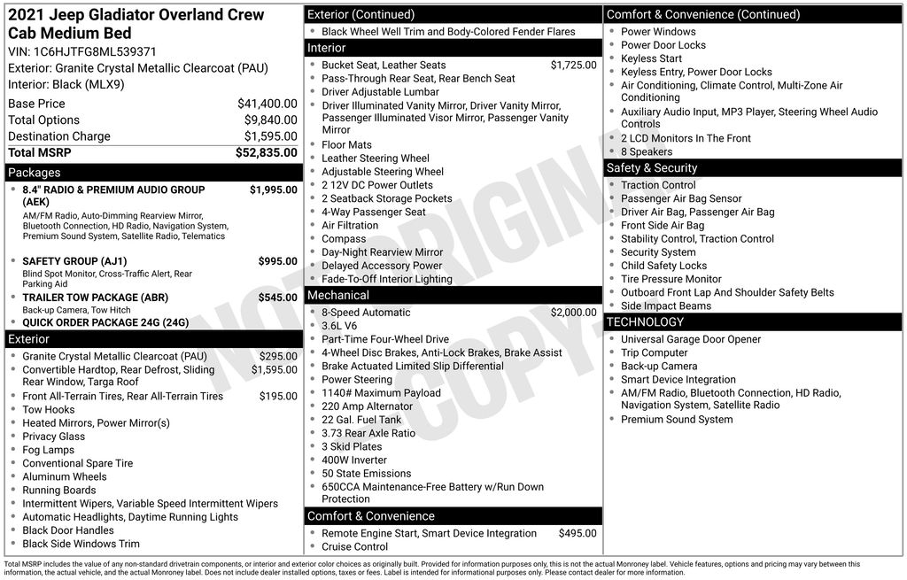 2021 Jeep Gladiator Overland Truck V6 24V VVT