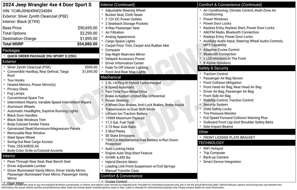2024 Jeep Wrangler Sport S 4xe SUV I4 DOHC