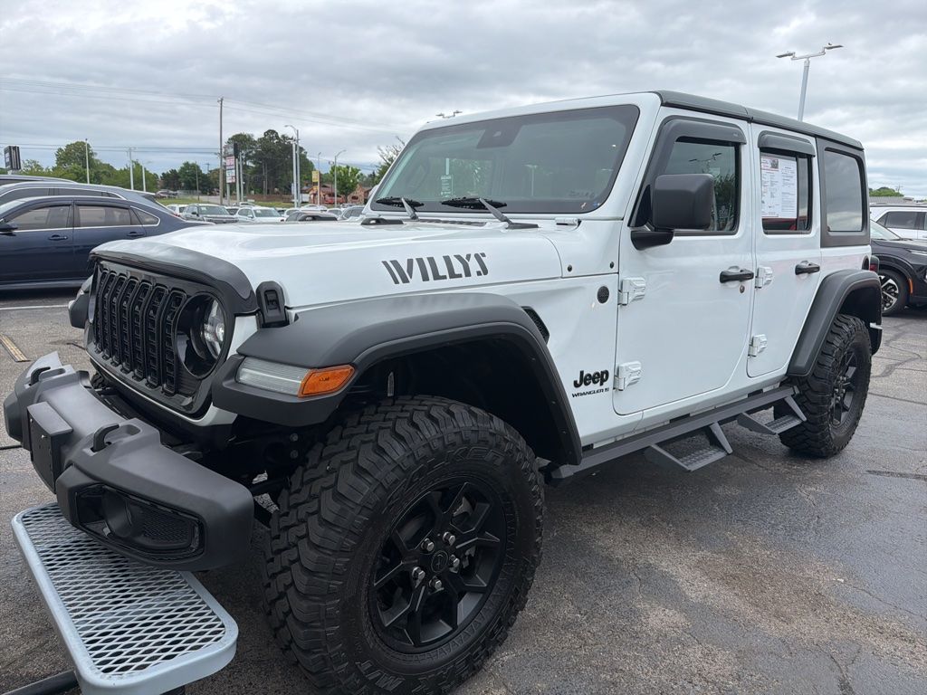 2024 Jeep Wrangler Willys Bright White Clearcoat Willys 4WD 8-Speed Automatic 3.6L V6 24V VVT 110 MPH Vehicle Max Speed Calibration, 240 Amp Alternator, 4-Wheel Disc Brakes, 4-Wheel Drive Swing Gate Decal, 7 & 4 Pin Wiring Harness, 8 Speakers, 97 MPH Vehicle Max Speed Calibration, ABS brakes, Advanced Brake Assist, Air Conditioning, Alpine Premium Audio System, AM/FM radio, Apple CarPlay/Android Auto, Automatic Headlamps, Aux Battery, Auxiliary Switches, Black 3-Piece Hard Top, Black Grille, Brake assist, Class II Receiver Hitch, Cloth Low-Back Bucket Seats, Compass, Conventional Differential Front Axle, Corning Gorilla Glass, Dana M210 Wide HD Tube Front Axle, Dana M220 Wide Rear Axle, Daytime Running Lamps LED Accents, Deep Tint Sunscreen Windows, Delay-off headlights, Driver door bin, Driver vanity mirror, Dual front impact airbags, Dual front side impact airbags, E-Locker Rear Axle, Electronic Stability Control, Enhanced Adaptive Cruise Control, Freedom Panel Storage Bag, Front 1-Touch Down Power Windows, Front anti-roll bar, Front Bucket Seats, Front Center Armrest w/Storage, Front fog lights, Front LED Fog Lamps, Front reading lights, Full Speed Forward Collision Warning Plus, Injection Molded Black Rear Bumper, Integrated roll-over protection, LED Premium Reflector Headlamps, Low tire pressure warning, Mold In Color Bumper w/Gloss Black, Molded in Color Rubicon Highline Flare, MOPAR All-Weather Floor Mats, No Soft Top, Non-Lock Fuel Cap w/o Discriminator, Normal Duty Suspension, Occupant sensing airbag, Off-Road Plus Mode, Outside temperature display, Overhead airbag, ParkView Rear Back-Up Camera, Passenger door bin, Passenger vanity mirror, Power Heated Mirrors, Power steering, Premium Wrapped Steering Wheel, Quick Order Package 24W Willys, Radio data system, Radio: Uconnect 5 w/12.3" Display, Rear anti-roll bar, Rear reading lights, Rear Window Defroster, Rear Window Wiper/Washer, Remote Keyless Entry, Security Alarm, Speed control, Speed Sensitive Power Locks, Split folding rear seat, Steering wheel mounted audio controls, Stop-Start Dual Battery System, Sun Visors w/Illuminated Vanity Mirrors, Tachometer, Technology Group, Telescoping steering wheel, Tilt steering wheel, Traction control, Trip computer, Variably intermittent wipers, Wheels: 17" x 7.5" Black Steel Styled, Wheels: 17" x 7.5" Painted Black, Willy's Suspension, Willys, Willys Hood Decal.