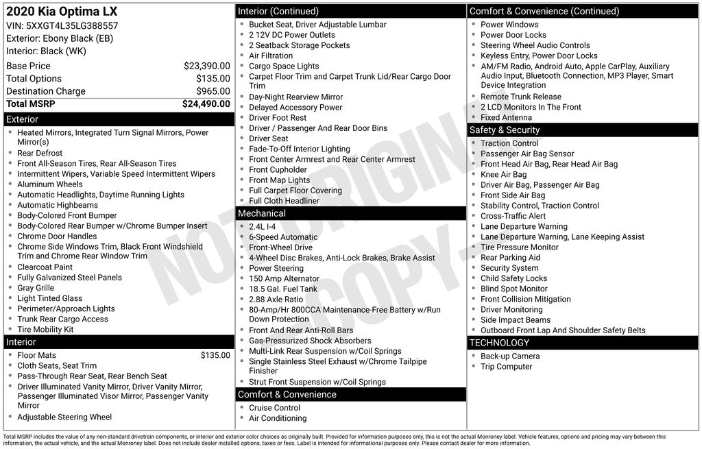 2020 Kia Optima LX Sedan I4 DGI DOHC