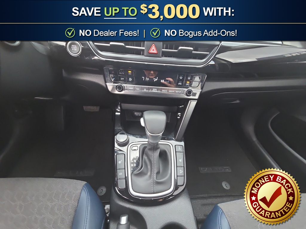 4-Wheel Disc Brakes, 6 Speakers, ABS brakes, Air Conditioning, Alloy wheels, AM/FM radio: SiriusXM, Apple CarPlay & Android Auto, Auto High-beam Headlights, Automatic temperature control, Brake assist, Bumpers: body-color, Cargo Cover, Carpet Floor Mats, Cloth & Artificial Leather Seat Trim, Delay-off headlights, Driver door bin, Driver vanity mirror, Dual front impact airbags, Dual front side impact airbags, Electronic Stability Control, Emergency communication system: 911 Connect, Exterior Parking Camera Rear, Four wheel independent suspension, Front anti-roll bar, Front Bucket Seats, Front Center Armrest, Front fog lights, Front reading lights, Fully automatic headlights, Heated door mirrors, Heated Front Bucket Seats (3-Steps), Heated front seats, Illuminated entry, Leather Shift Knob, Leather steering wheel, Low tire pressure warning, Navigation System, Navy Interior Color Package, Occupant sensing airbag, Outside temperature display, Overhead airbag, Overhead console, Panic alarm, Passenger door bin, Passenger vanity mirror, Power door mirrors, Power steering, Power windows, Radio: AM/FM/HD/Satellite Display System w/Navigation, Rear seat center armrest, Rear window defroster, Rear window wiper, Remote keyless entry, Security system, Speed control, Speed-sensing steering, Split folding rear seat, Spoiler, Steering wheel mounted audio controls, Tachometer, Telescoping steering wheel, Tilt steering wheel, Traction control, Trip computer, Turn signal indicator mirrors, Variably intermittent wipers, Wheels: 17" Alloy w/Machined Finished. 2025 Kia Seltos S
