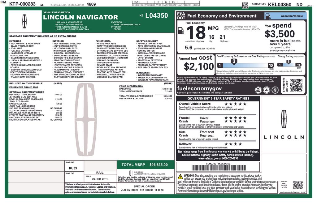 2019 Lincoln Navigator L L Reserve 4WD 10-Speed Automatic V6 Diamond
