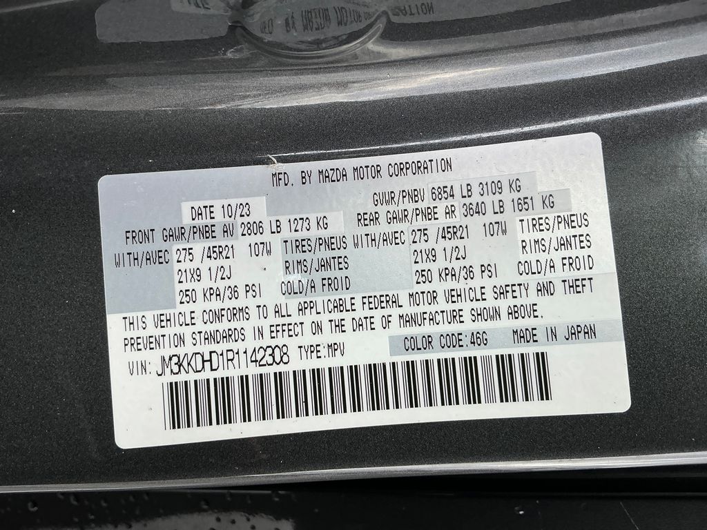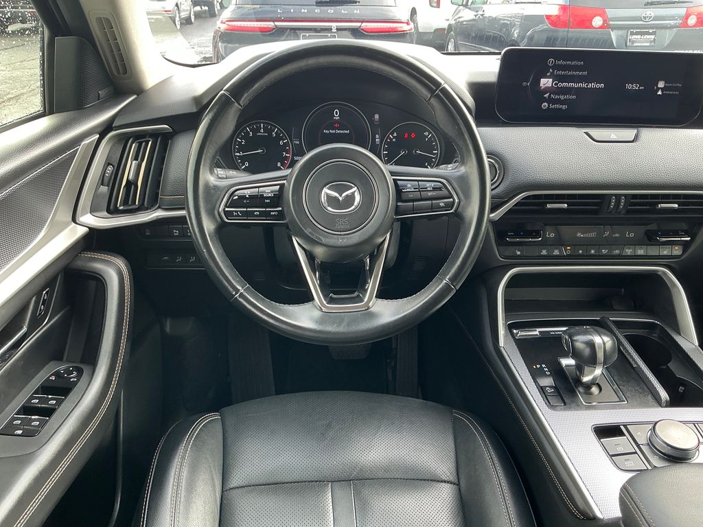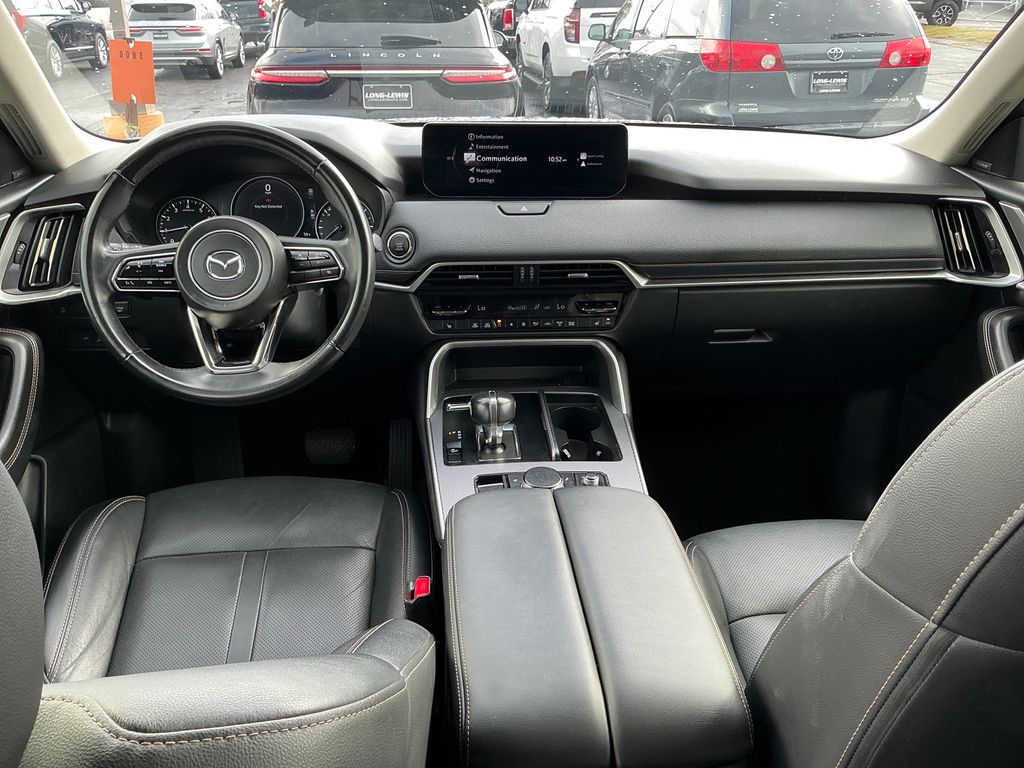2024 Mazda CX-90 3.3 Turbo Premium Machine Gray Metallic 3.3 Turbo Premium AWD 8-Speed Automatic I6 Turbo 12 Speakers, 3.692 Axle Ratio, 3rd row seats: bench, 4-Wheel Disc Brakes, ABS brakes, Air Conditioning, Alloy wheels, AM/FM radio: SiriusXM, Auto High-beam Headlights, Auto-dimming Rear-View mirror, Automatic temperature control, Brake assist, Bumpers: body-color, Compass, Delay-off headlights, Driver door bin, Driver vanity mirror, Dual front impact airbags, Dual front side impact airbags, E911 Automatic Emergency Notification, Electronic Stability Control, Emergency communication system: MAZDA CONNECT, Exterior Parking Camera Rear, Four wheel independent suspension, Front anti-roll bar, Front Bucket Seats, Front Center Armrest w/Storage, Front dual zone A/C, Front reading lights, Fully automatic headlights, Garage door transmitter: HomeLink, Heads-Up Display, Heated door mirrors, Heated Front Bucket Seats, Heated front seats, Illuminated entry, Infotainment System Voice Command, Knee airbag, Leather Seat Trim, Leather Shift Knob, Leather steering wheel, Low tire pressure warning, Machine Gray Metallic Paint Charge, Mazda Connected Services, Mazda Navigation System, Memory seat, Navigation system: MAZDA CONNECT, Occupant sensing airbag, Outside temperature display, Overhead airbag, Overhead console, Pandora Internet Radio Integration, Panic alarm, Passenger door bin, Passenger vanity mirror, Power door mirrors, Power driver seat, Power Liftgate, Power moonroof, Power passenger seat, Power steering, Power windows, Radio Broadcast Data System Program Information, Radio data system, Radio: AM/FM w/Bose Audio Sound System, Rain sensing wipers, Rear air conditioning, Rear anti-roll bar, Rear reading lights, Rear window defroster, Rear window wiper, Remote keyless entry, SMS Text Msg Audio Delivery & Reply, Speed control, Speed-sensing steering, Split folding rear seat, Spoiler, Steering wheel mounted audio controls, Tachometer, Telescoping steering wheel, Tilt steering wheel, Traction control, Trip computer, Turn signal indicator mirrors, Variably intermittent wipers, Wheels: 21" x 9.5J Aluminum Alloy.
