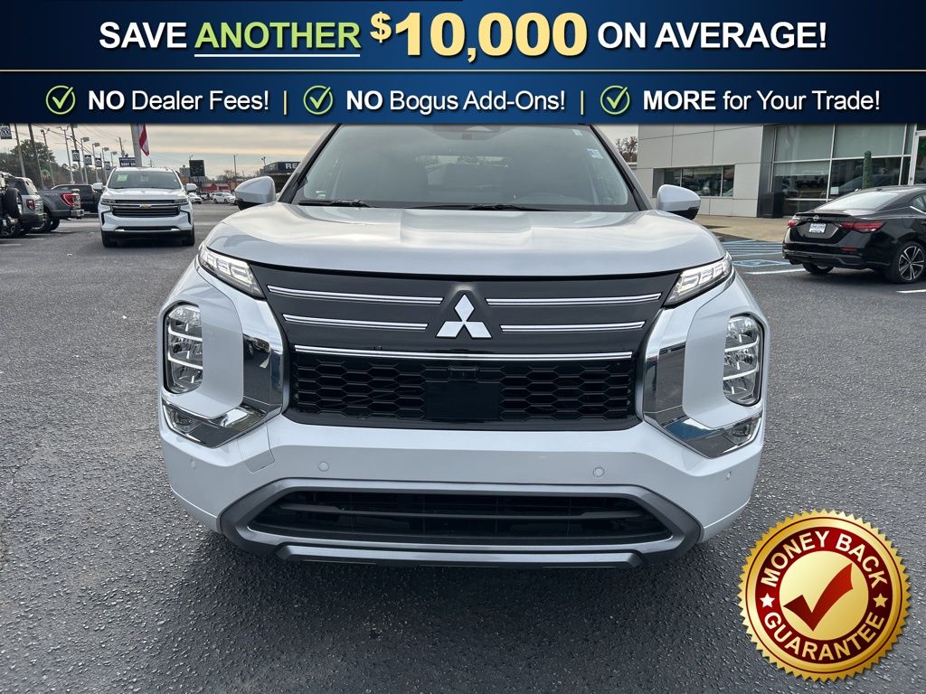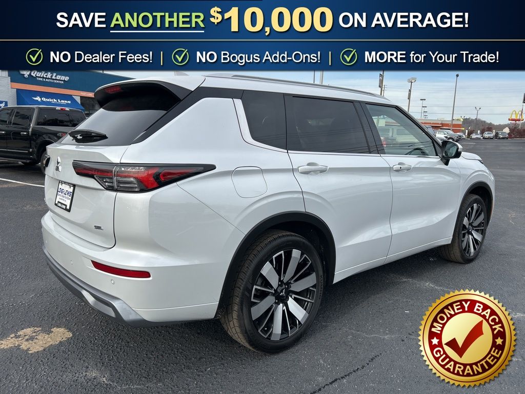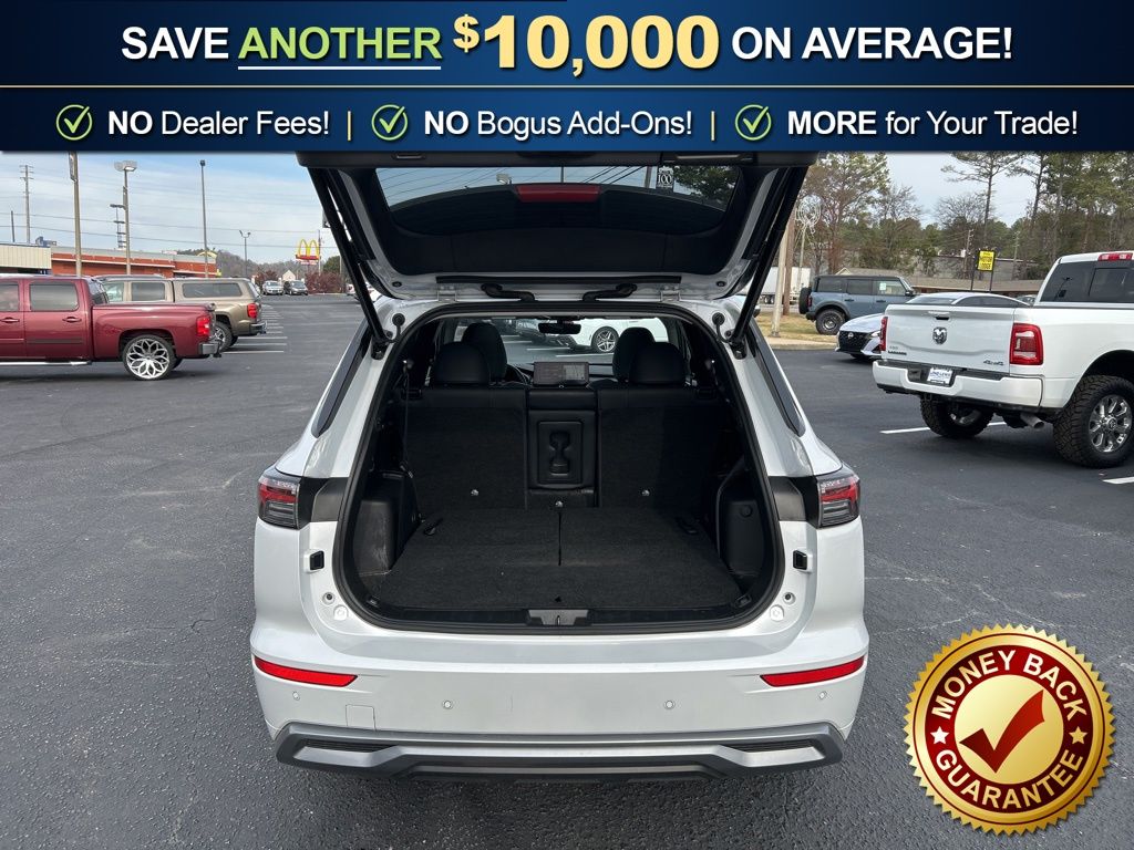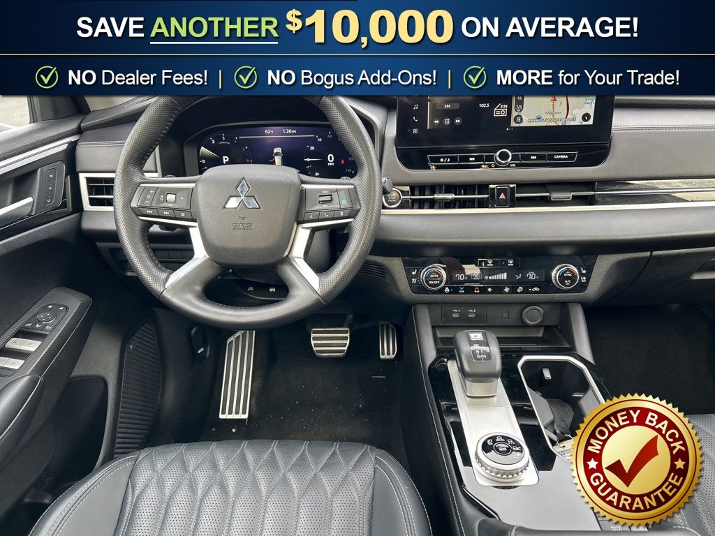 3rd row seats: split-bench, 4-Wheel Disc Brakes, 8 Speakers, ABS brakes, Air Conditioning, Alloy wheels, AM/FM radio: SiriusXM, Android Auto & Apple CarPlay, Auto High-beam Headlights, Auto-dimming Rear-View mirror, Automatic temperature control, Brake assist, Bumpers: body-color, Driver door bin, Driver vanity mirror, Dual front impact airbags, Dual front side impact airbags, Electronic Stability Control, Emergency communication system: Mitsubishi Connect w/ 24-month trial, Exterior Parking Camera Rear, Four wheel independent suspension, Front anti-roll bar, Front Bucket Seats, Front Center Armrest w/Storage, Front dual zone A/C, Front fog lights, Front reading lights, Fully automatic headlights, Garage door transmitter: HomeLink, Heated door mirrors, Heated Front Bucket Seats, Heated front seats, Heated rear seats, Heated steering wheel, Illuminated entry, Knee airbag, Leather Appointed Seating Surfaces, Leather Shift Knob, Leather steering wheel, Low tire pressure warning, Memory seat, Navigation System, Occupant sensing airbag, Outside temperature display, Overhead airbag, Overhead console, Panic alarm, Passenger door bin, Passenger vanity mirror, Power door mirrors, Power driver seat, Power Liftgate, Power moonroof: Panoramic, Power passenger seat, Power steering, Power windows, Radio data system, Radio: AM/FM 12.3" Navigation w/Smartphone-Link, Rain sensing wipers, Rear air conditioning, Rear anti-roll bar, Rear seat center armrest, Rear side impact airbag, Rear window defroster, Rear window wiper, Reclining 3rd row seat, Remote keyless entry, Security system, Speed control, Speed-Sensitive Wipers, Split folding rear seat, Spoiler, Steering wheel mounted audio controls, Tachometer, Telescoping steering wheel, Tilt steering wheel, Traction control, Trip computer, Turn signal indicator mirrors, Variably intermittent wipers, Wheels: 20" Two-Tone Alloy. 2025 Mitsubishi Outlander SEL