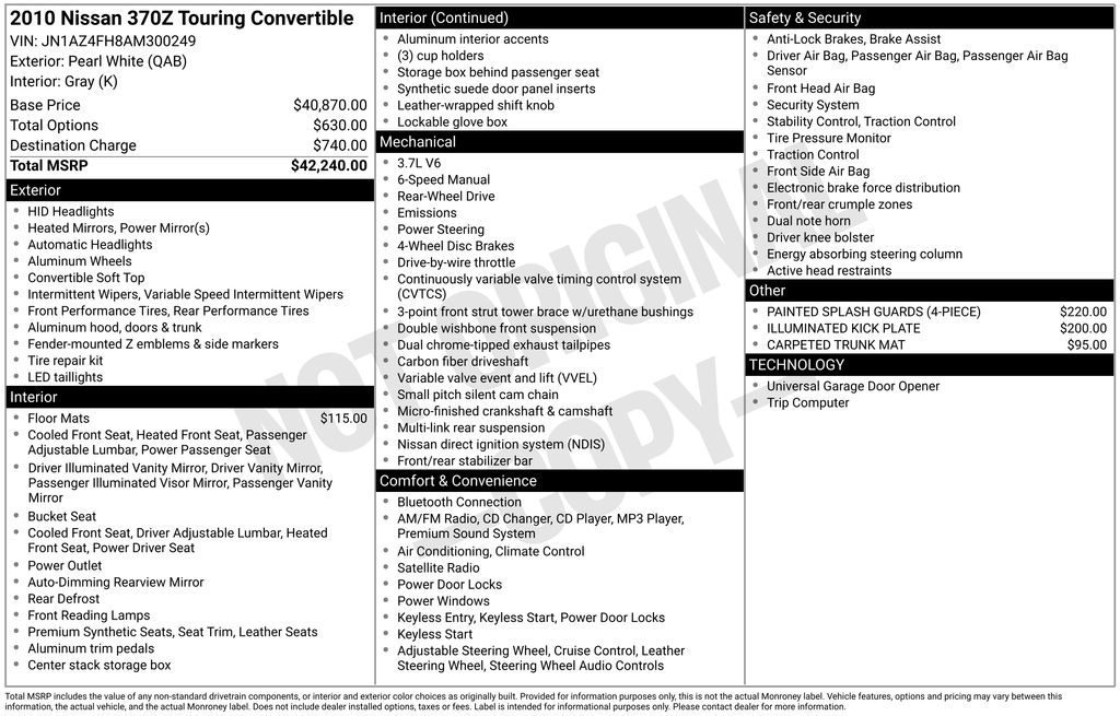 2010 Nissan 370Z Touring Convertible V6 DOHC