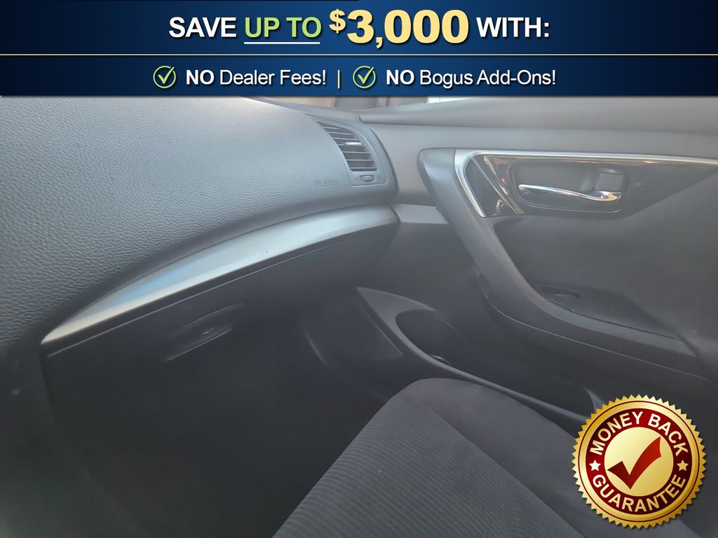 CVT with Xtronic, 16" x 7.0" Steel w/Full Covers Wheels, 4-Wheel Disc Brakes, 6 Speakers, ABS brakes, Air Conditioning, AM/FM radio, AM/FM/CD/MP3 Audio System, Brake assist, Bumpers: body-color, CD player, Cloth Seat Trim, Delay-off headlights, Driver door bin, Driver vanity mirror, Dual front impact airbags, Dual front side impact airbags, Electronic Stability Control, Floor Mats w/o Trunk Mat (4 Piece), Four wheel independent suspension, Front anti-roll bar, Front Bucket Seats, Front Center Armrest w/Storage, Front reading lights, Fully automatic headlights, Illuminated entry, Low tire pressure warning, Occupant sensing airbag, Outside temperature display, Overhead airbag, Overhead console, Panic alarm, Passenger door bin, Passenger vanity mirror, Power door mirrors, Power driver seat, Power steering, Power windows, Radio data system, Rear anti-roll bar, Rear reading lights, Rear seat center armrest, Rear window defroster, Remote keyless entry, Security system, Speed control, Speed-sensing steering, Speed-Sensitive Wipers, Split folding rear seat, Steering wheel mounted audio controls, Tachometer, Telescoping steering wheel, Tilt steering wheel, Traction control, Trip computer, Variably intermittent wipers, CVT with Xtronic. 2013 Nissan Altima 2.5 S